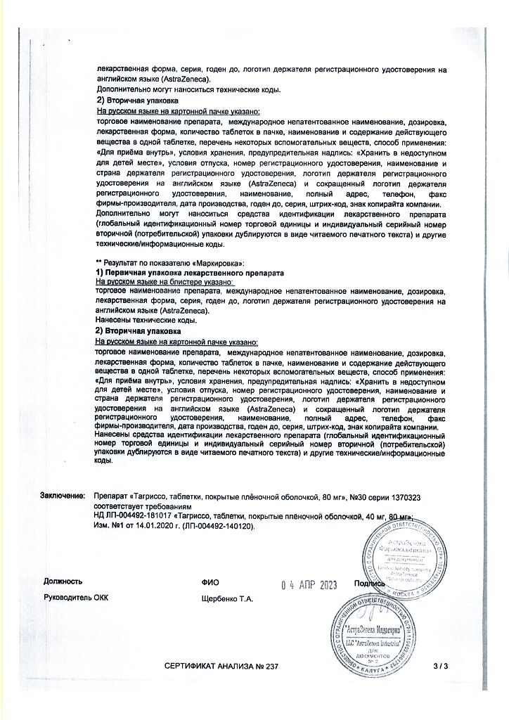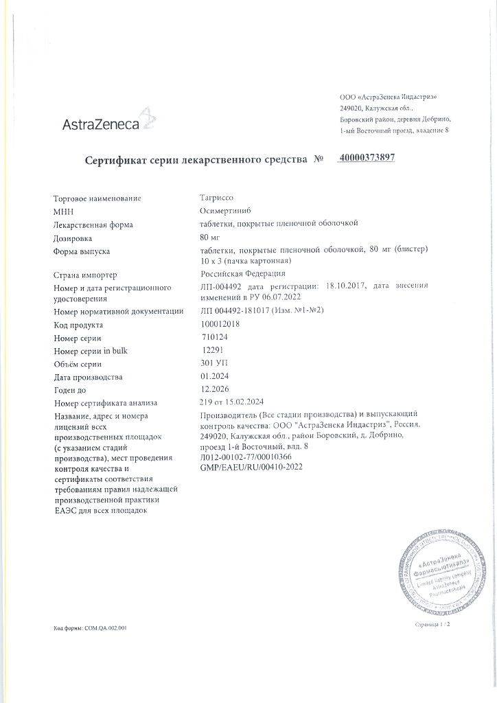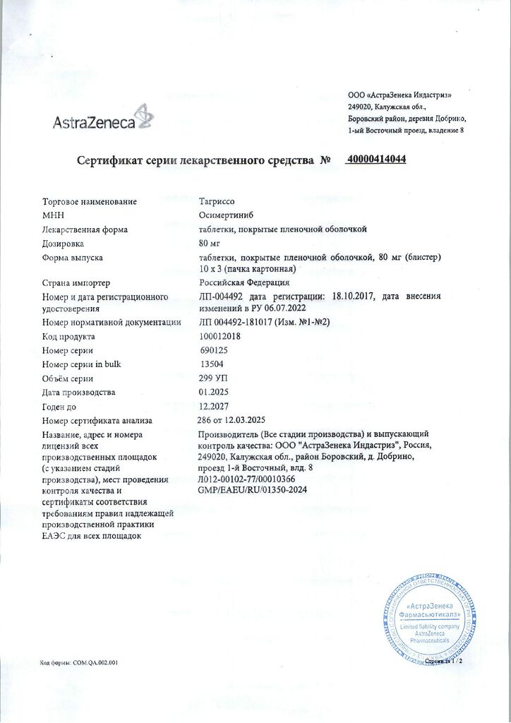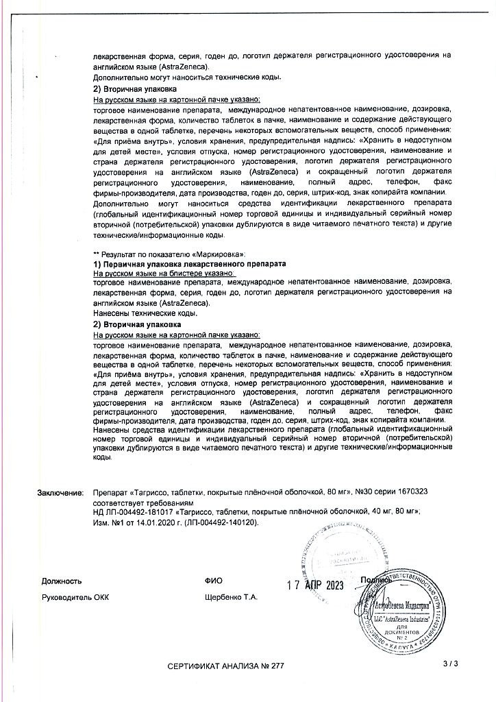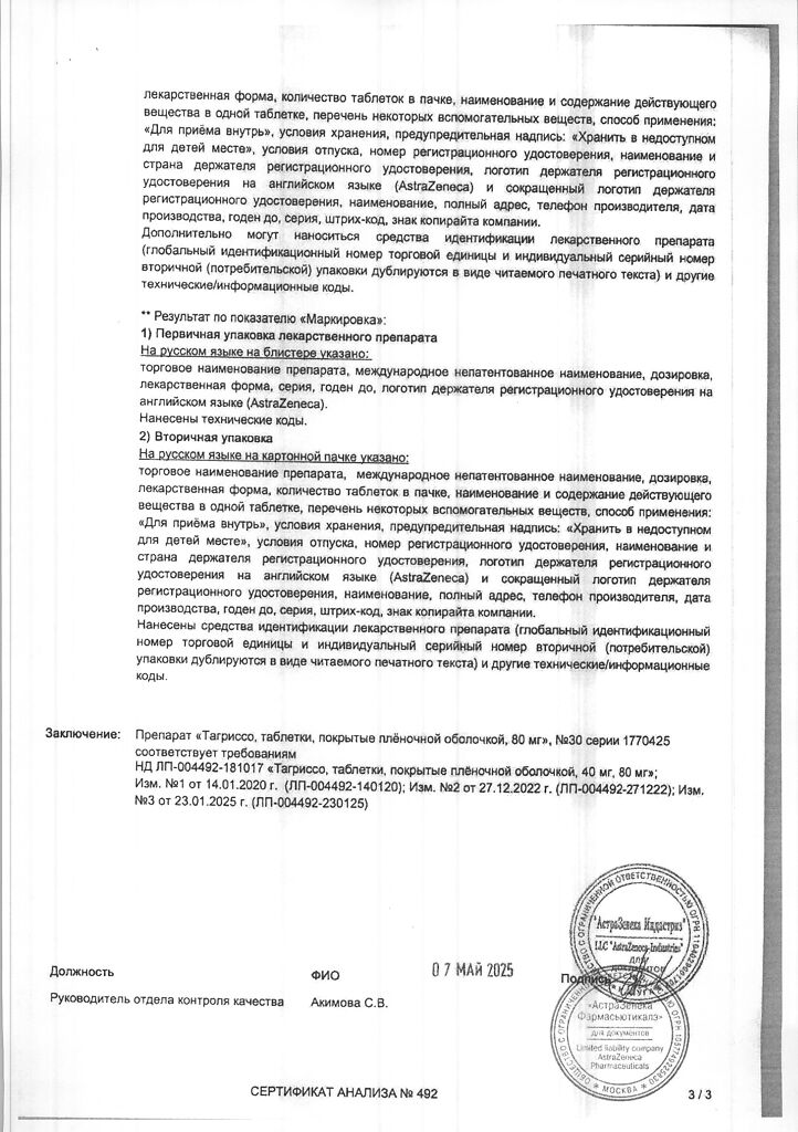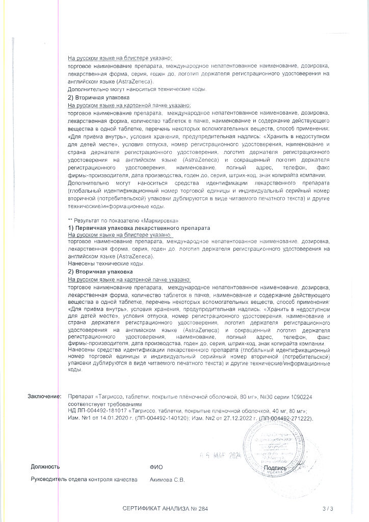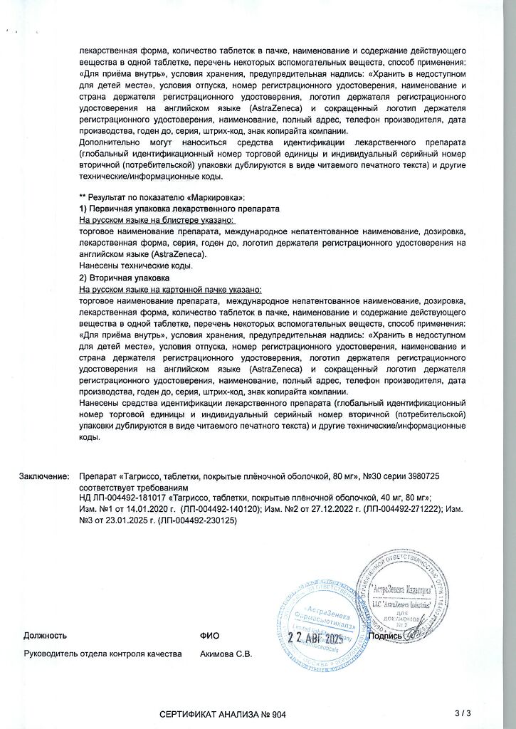 • 📲 Цена на Тагриссо таблетки покрыт.плен.об. 80 мг 30 шт ниже в нашем приложении