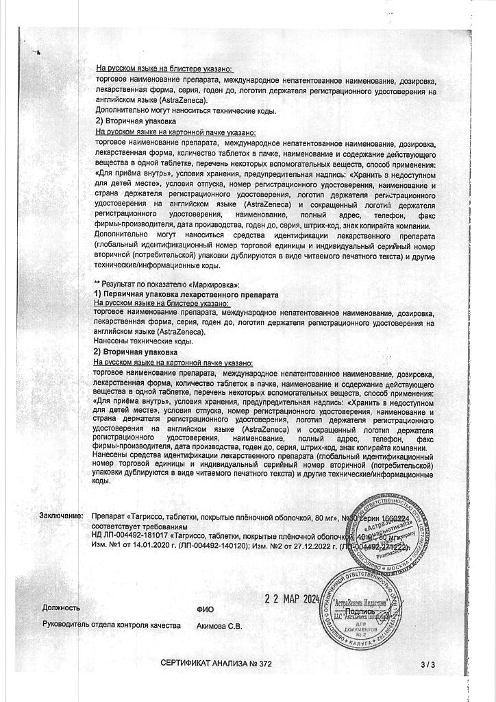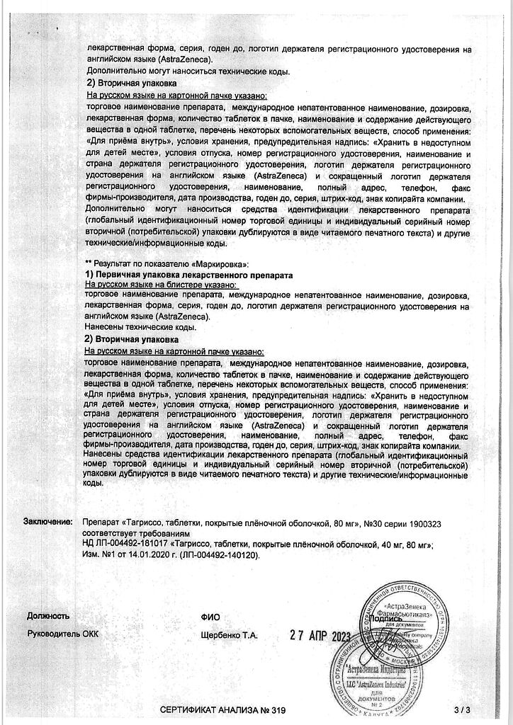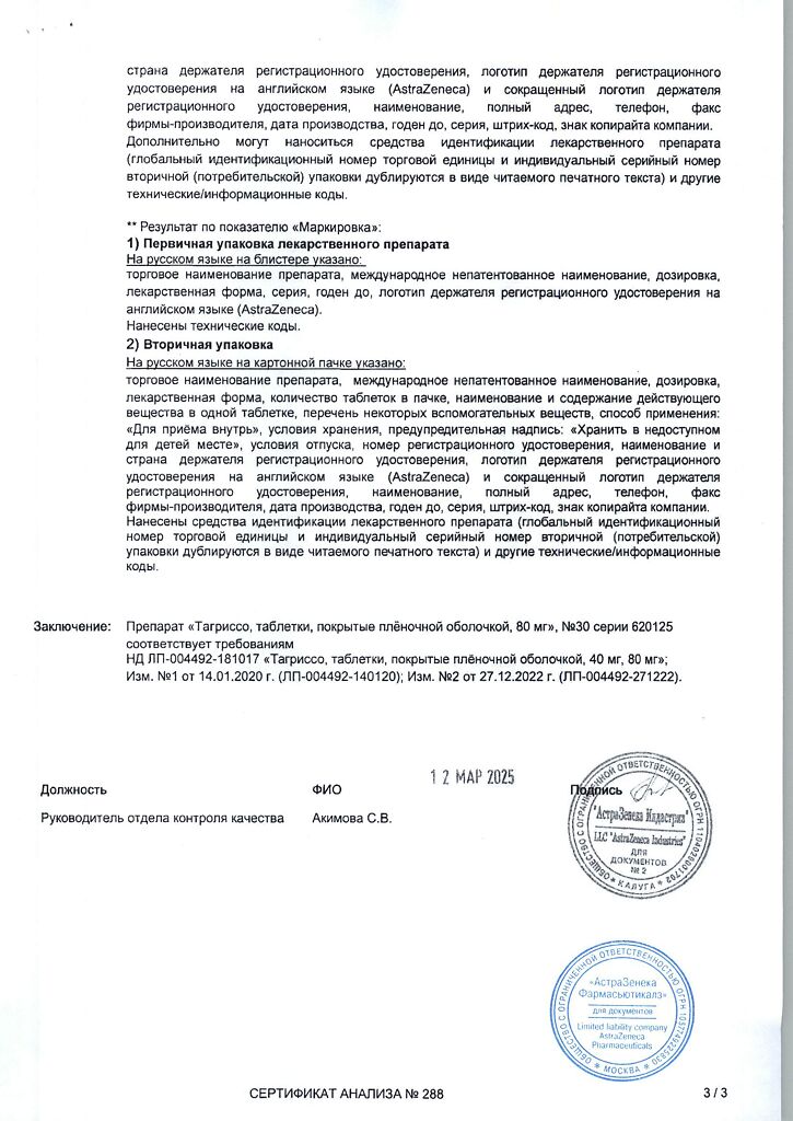 Тагриссо таблетки покрыт.плен.об. 80 мг 30 шт