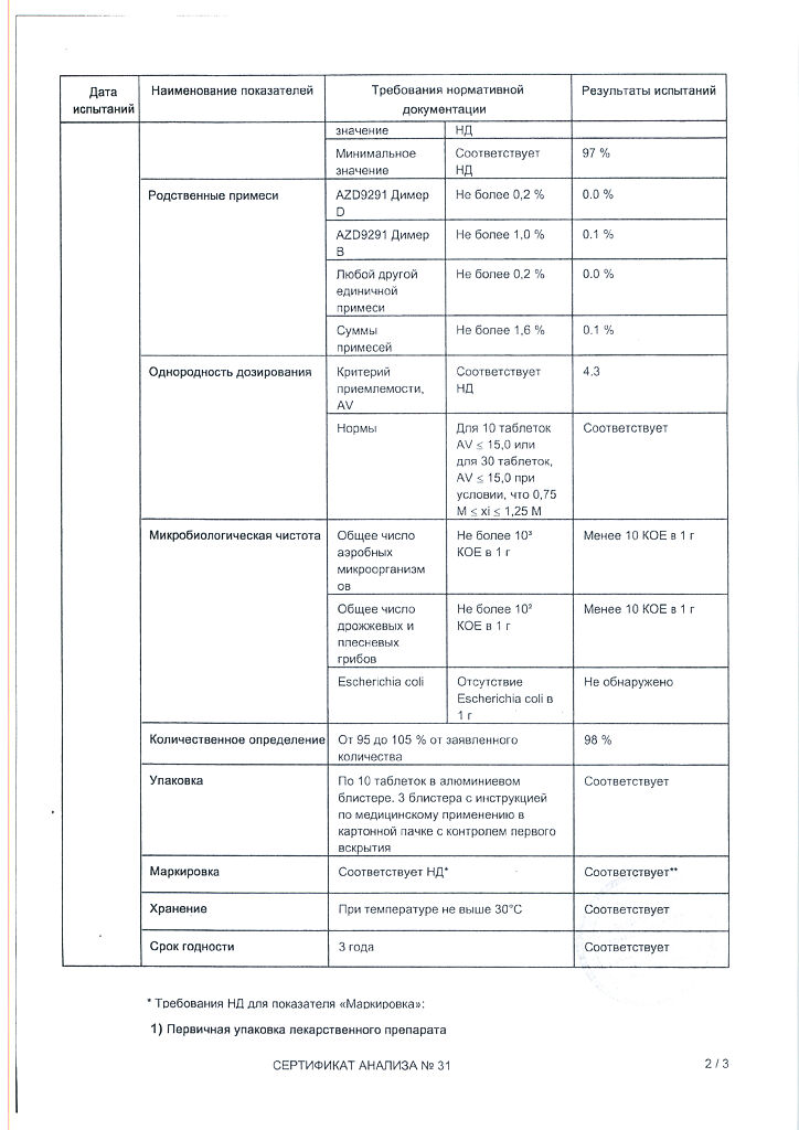 13 Один случай был отмечен в постмаркетинговом исследовании; частота была оценена по данным исследований ADAURA, FLAURA, AURA и постмаркетингового исследования (N=5057).