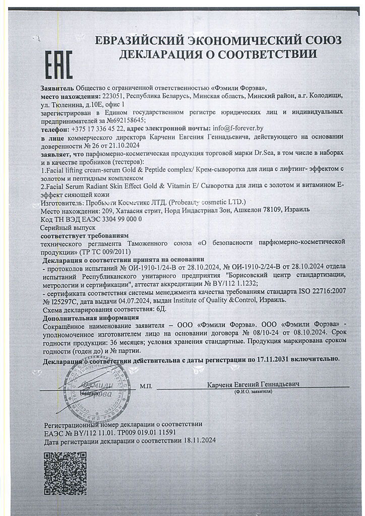 Золотая серия Dr.Sea – это сочетание самых инновационных израильских биотехнологий и невероятно богатого состава продуктов.