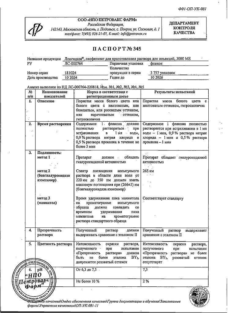 Действующее вещество: Бовгиалуронидаза азоксимер