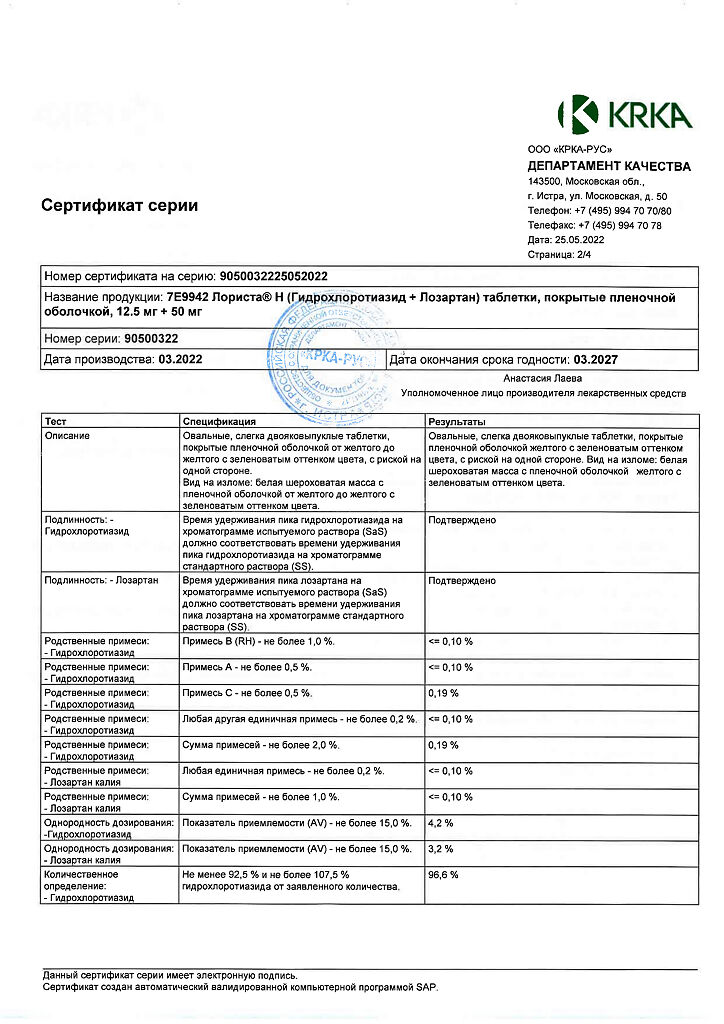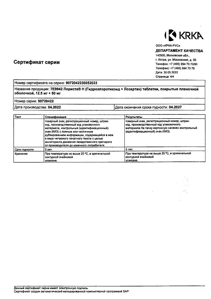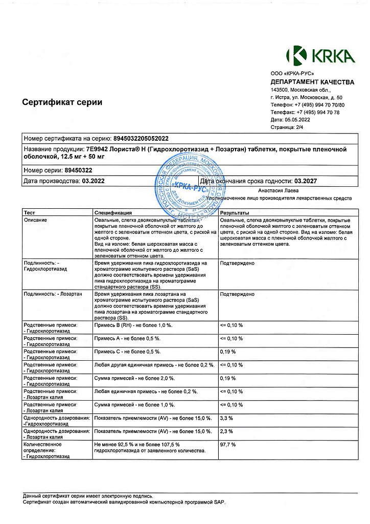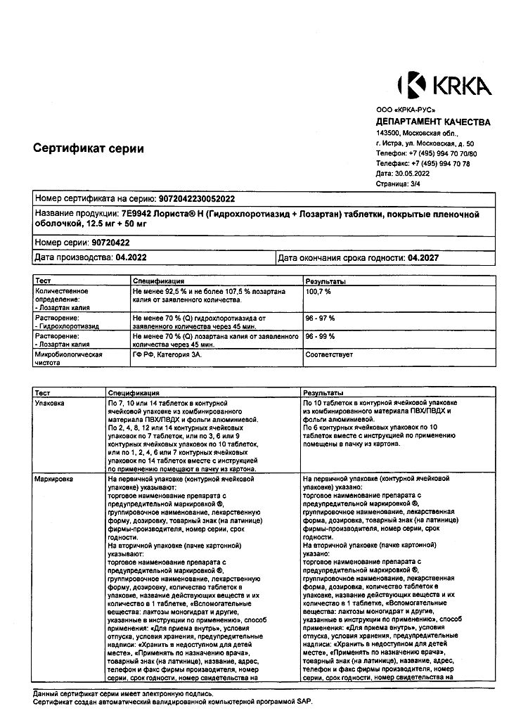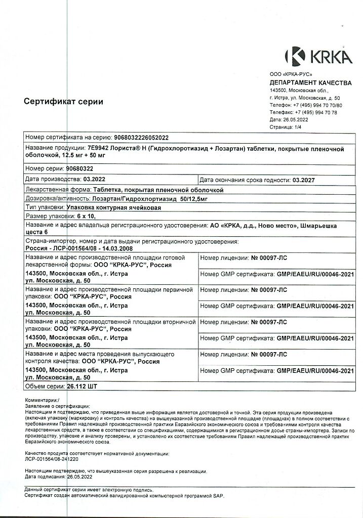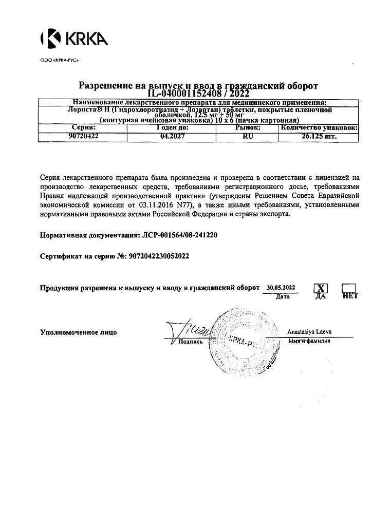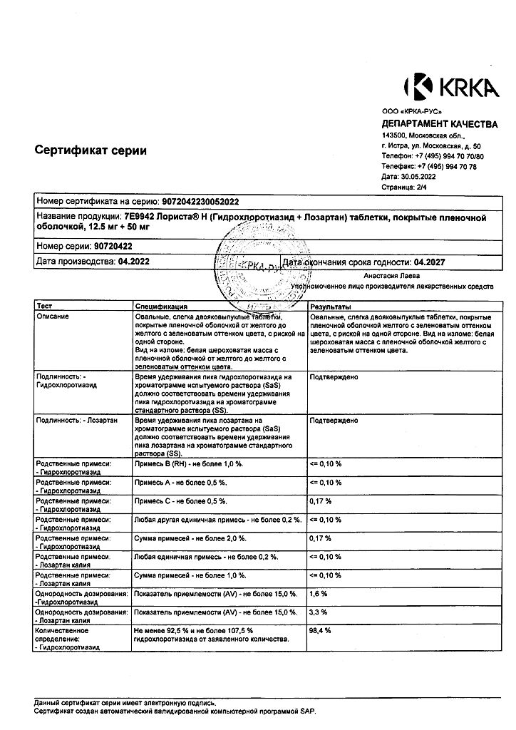 Документы Лориста Н таблетки покрыт.плен.об. 12,5 мг+50 мг 60 шт