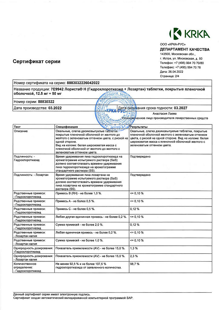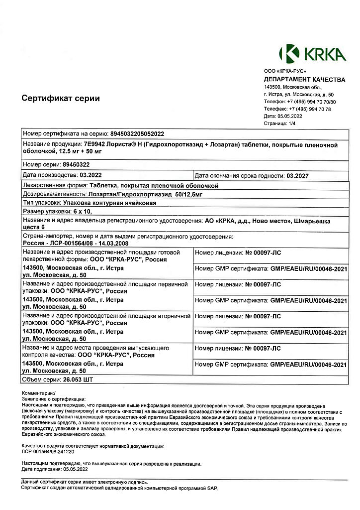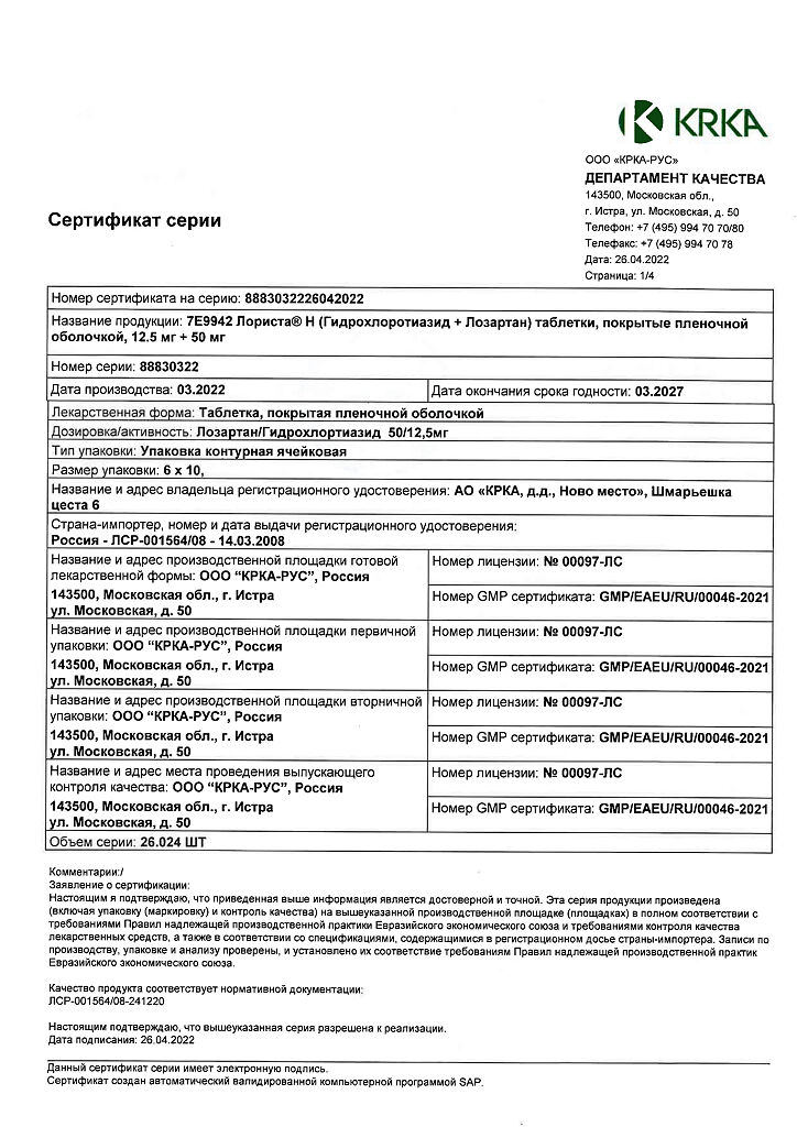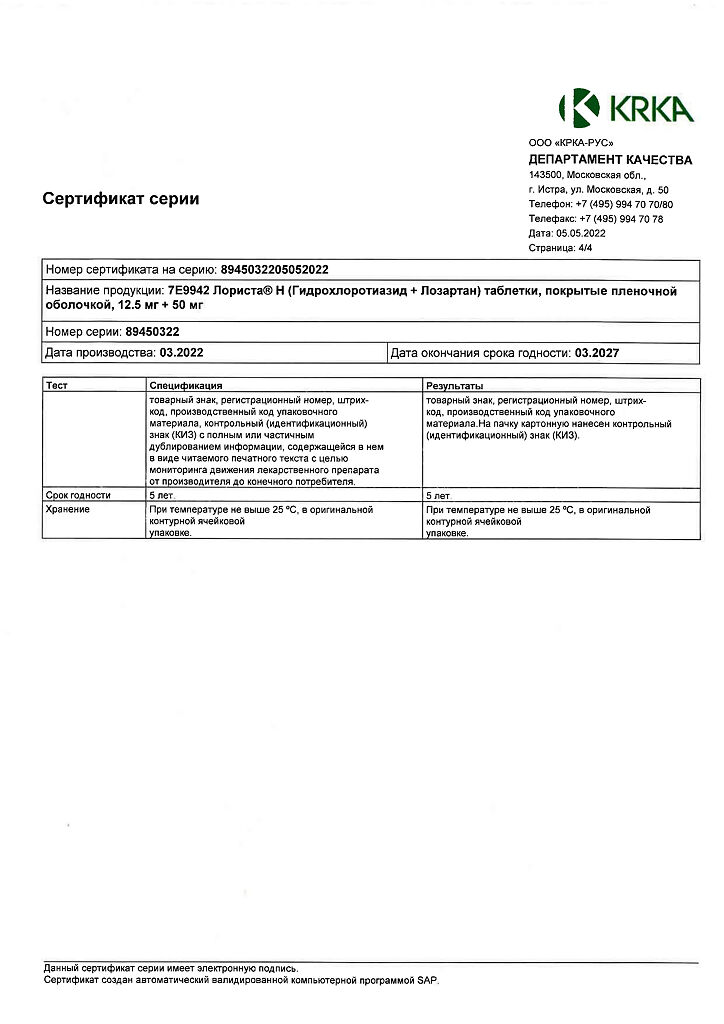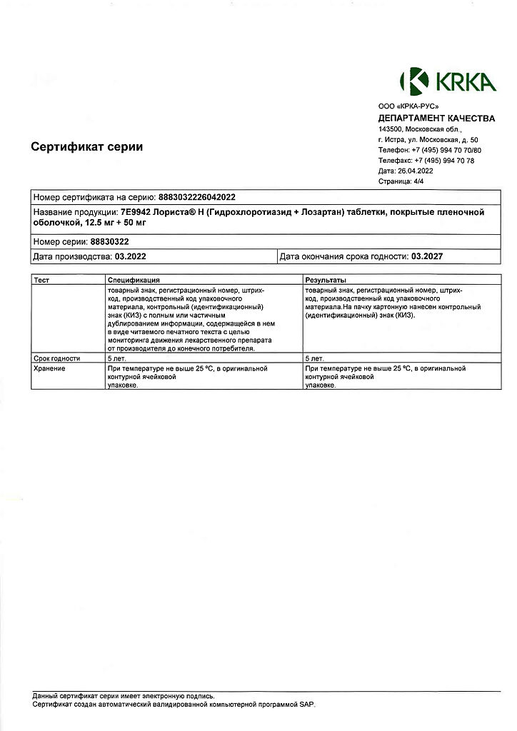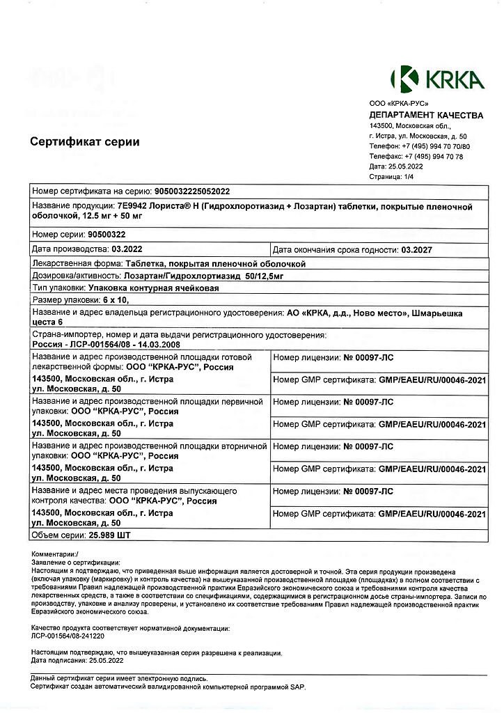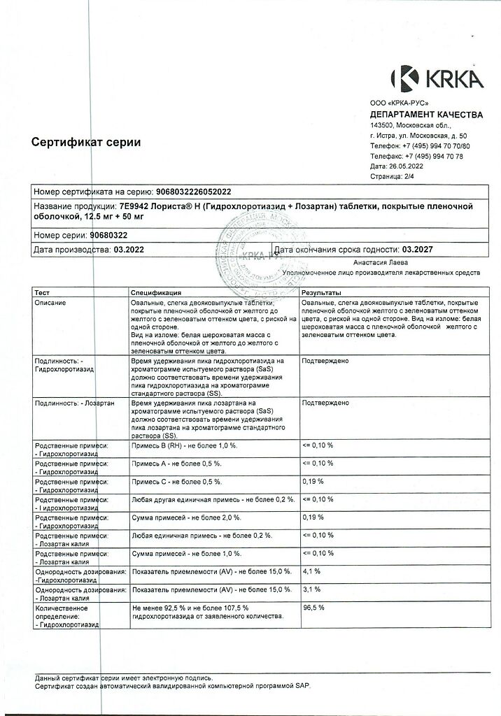 Документы Лориста Н таблетки покрыт.плен.об. 12,5 мг+50 мг 60 шт