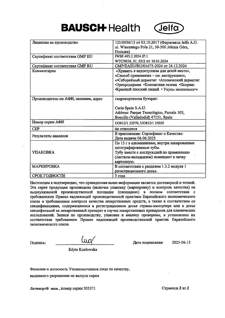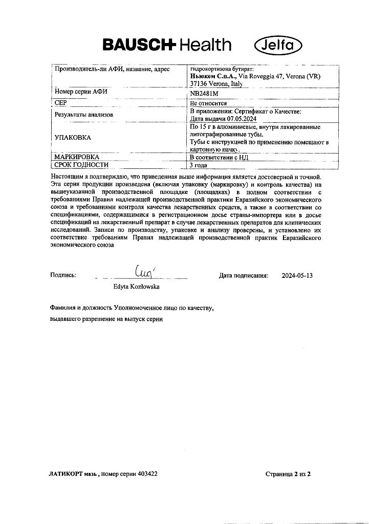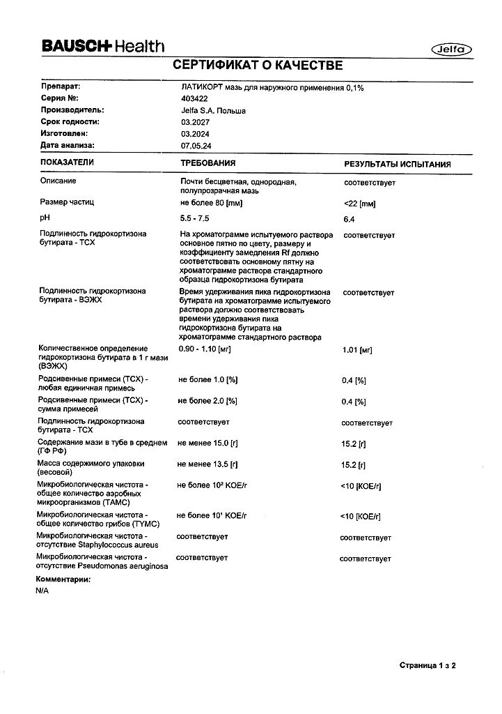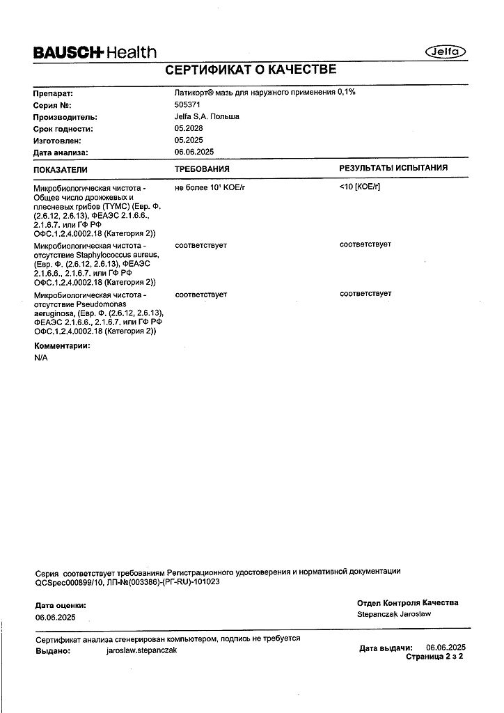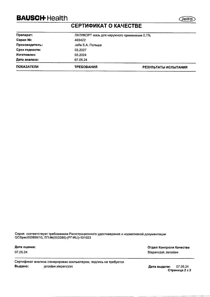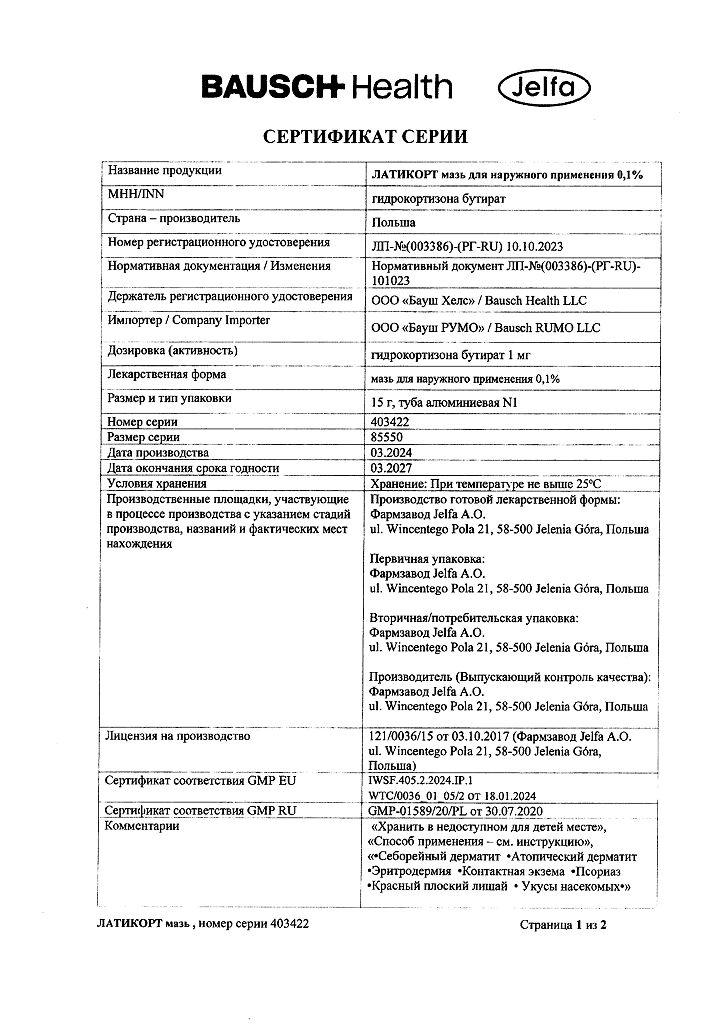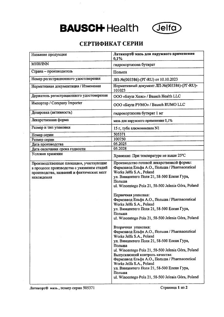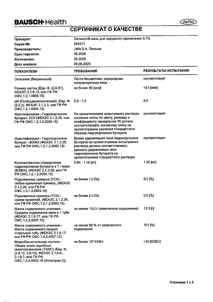 Документы Латикорт мазь для наружного применения 0,1 % 15 г 1 шт