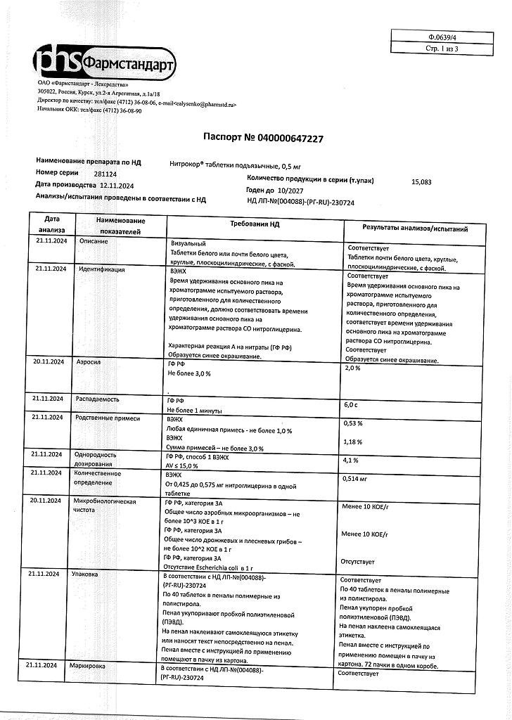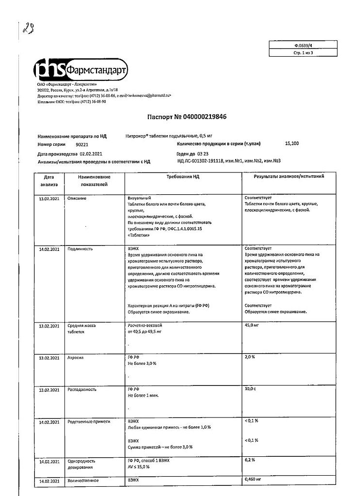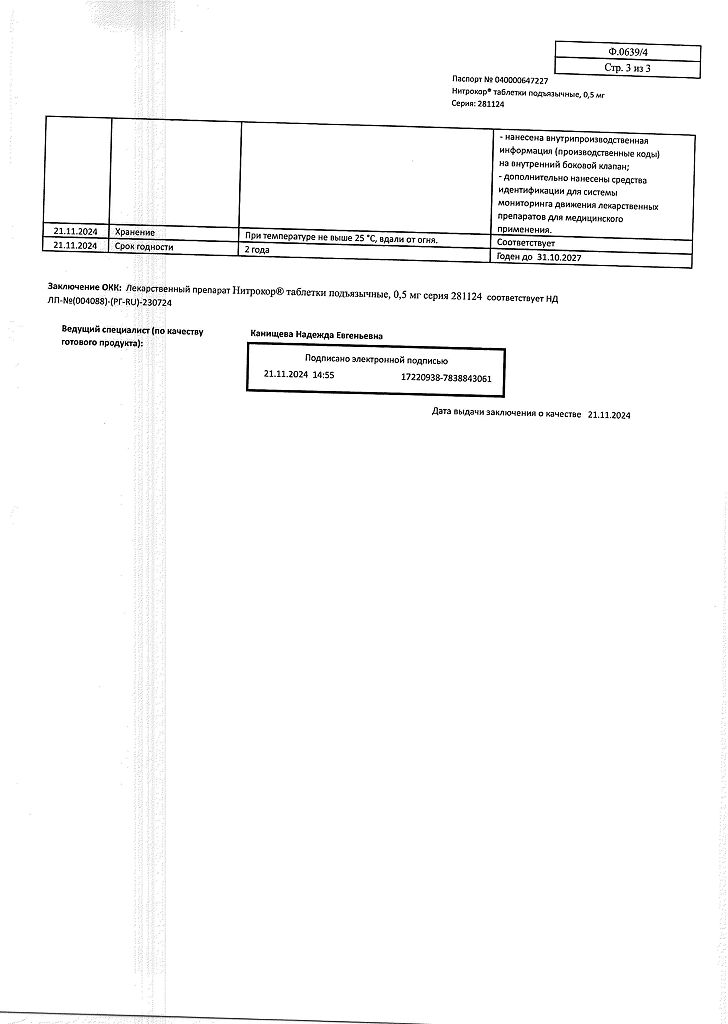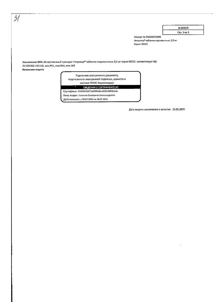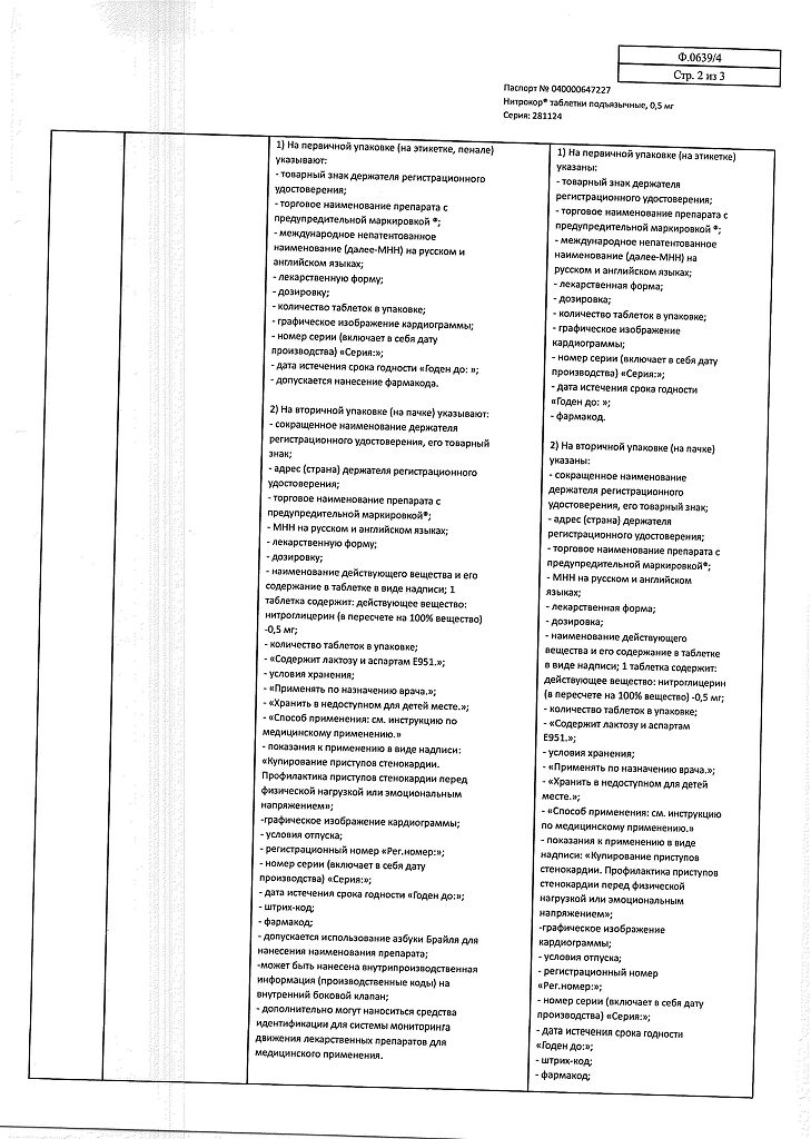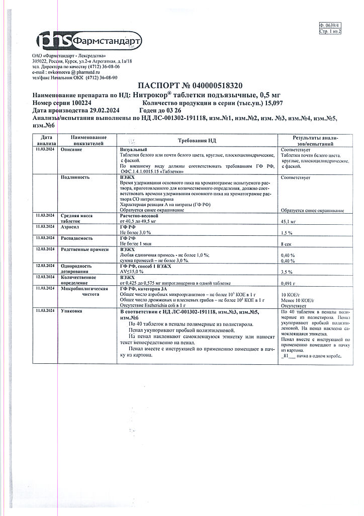 Действующее вещество: Нитроглицерин