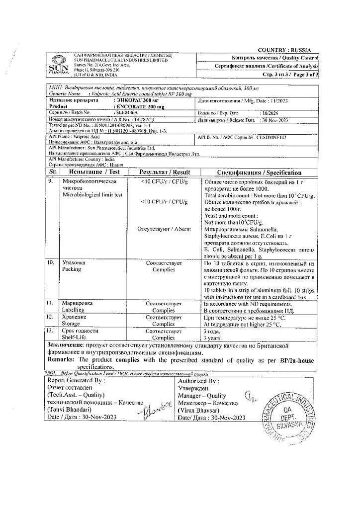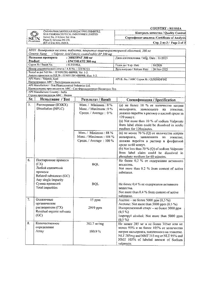 Действующее вещество: Вальпроевая кислота