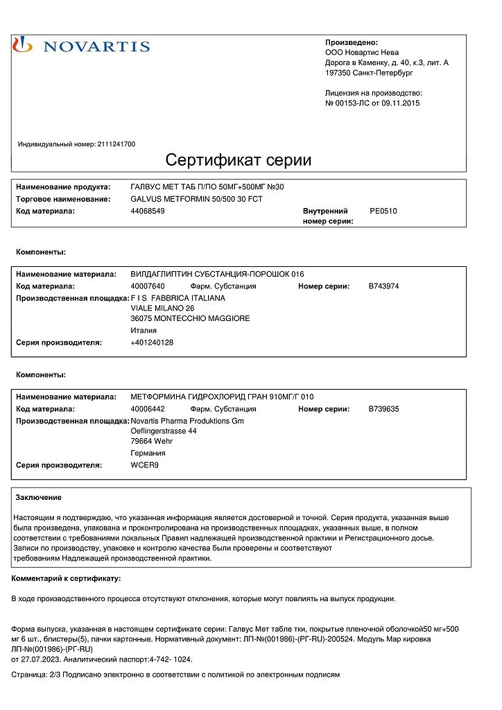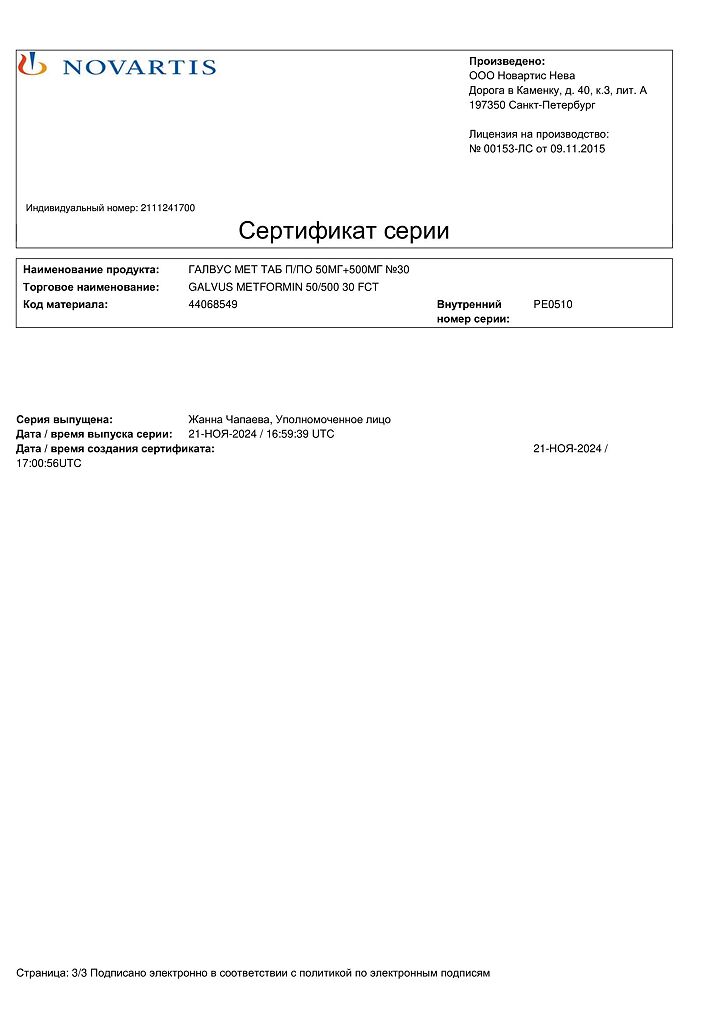 Документы Галвус Мет таблетки покрыт.плен.об. 50 мг+500 мг 30 шт