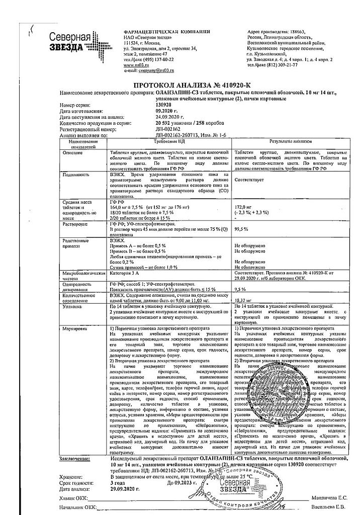 Действующее вещество: Оланзапин