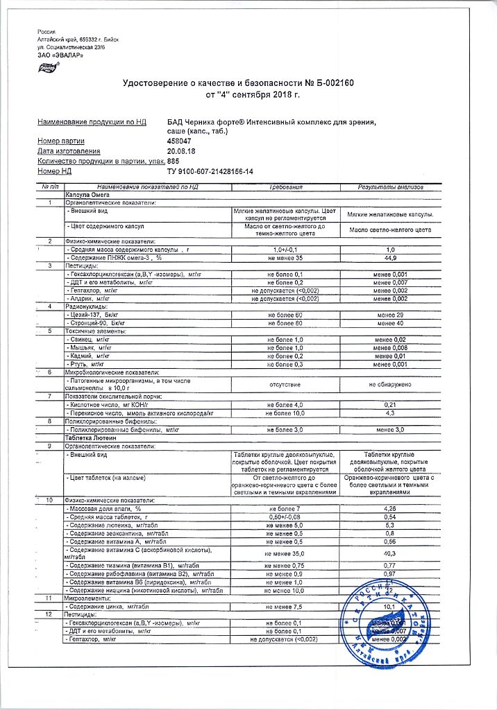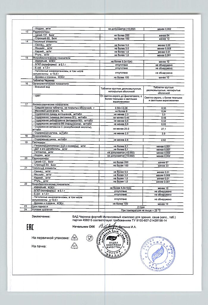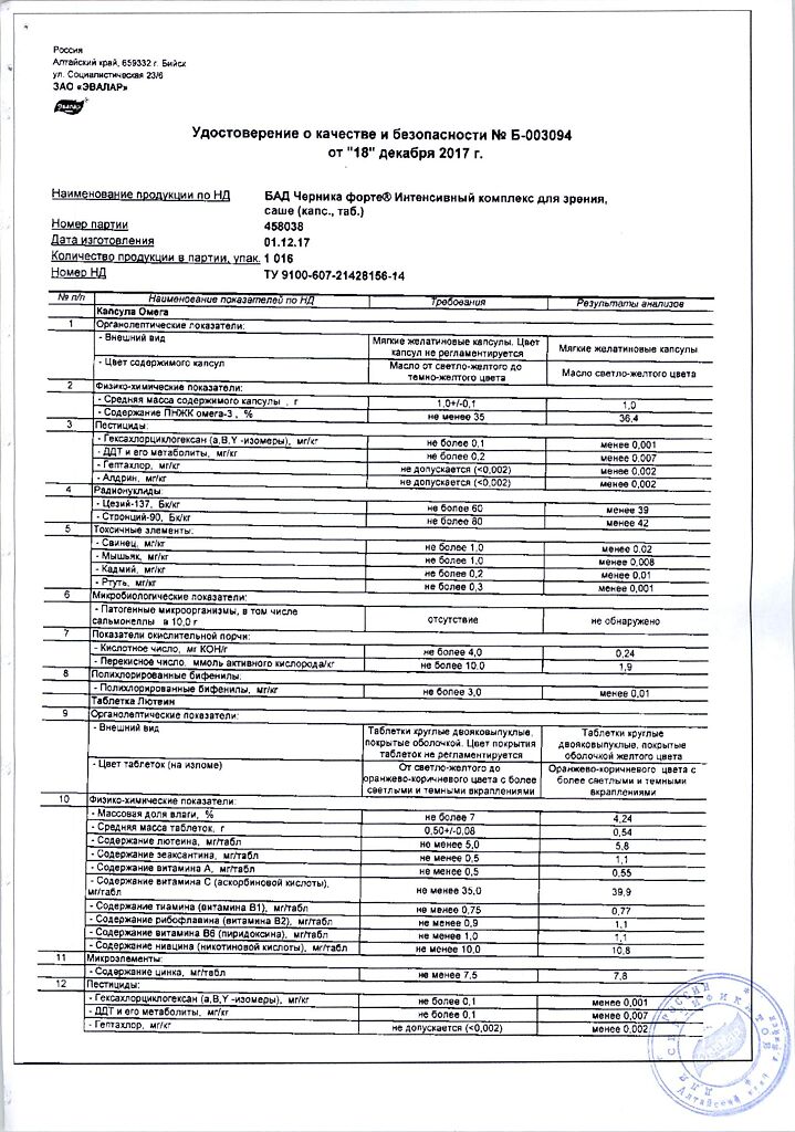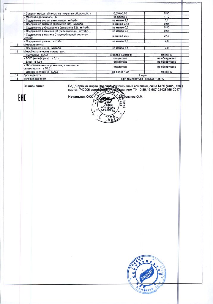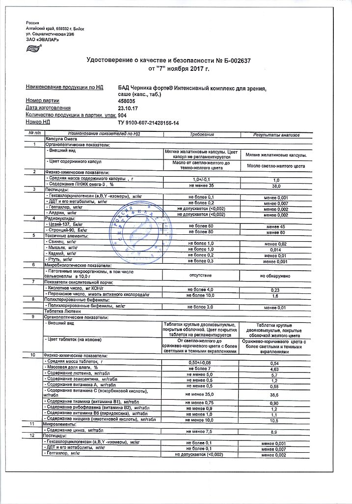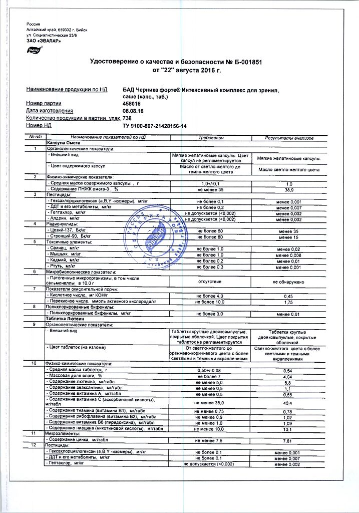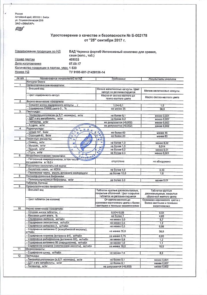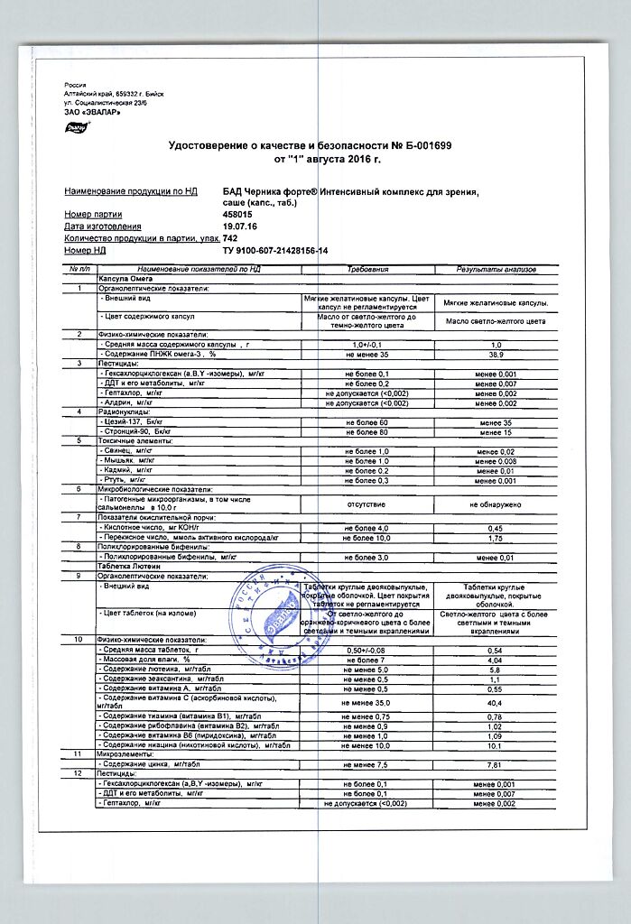Документы Черника Форте Эвалар Интенсивный комплекс саше по 1,0 г 30 шт