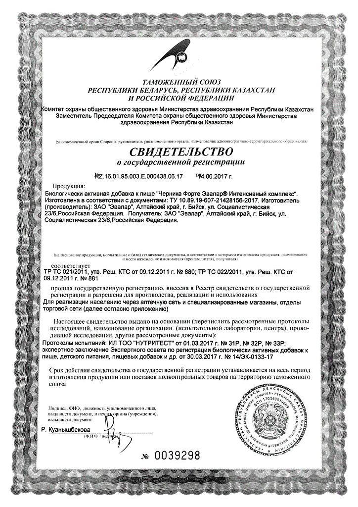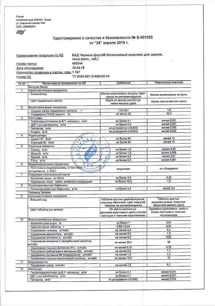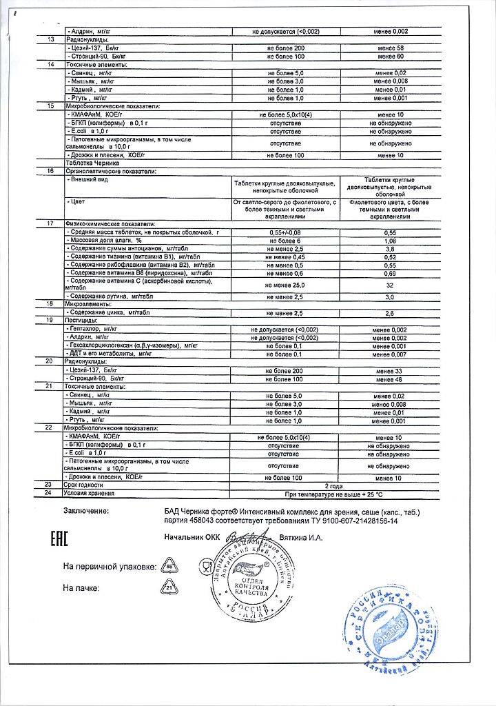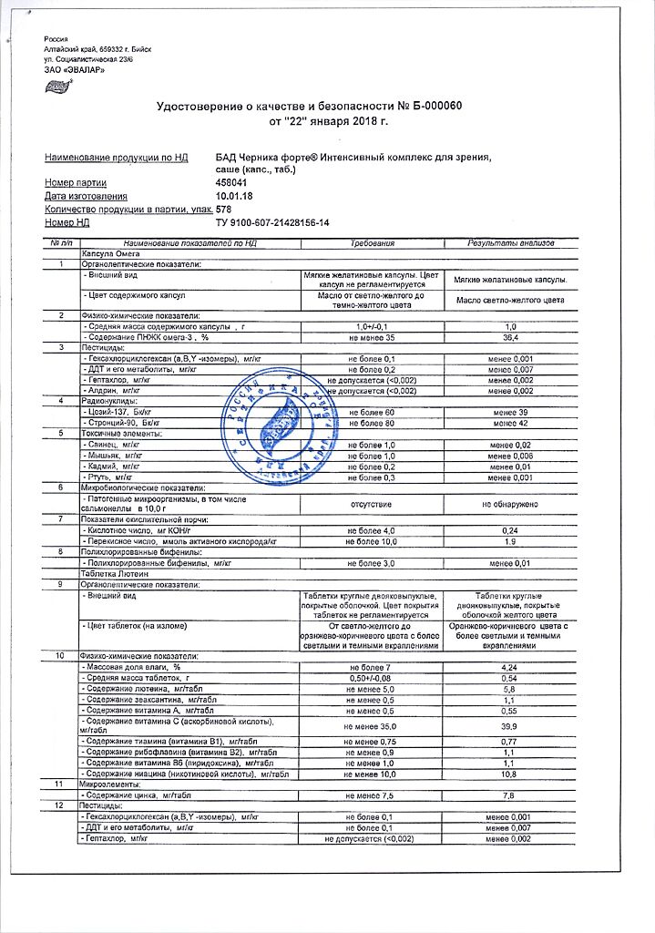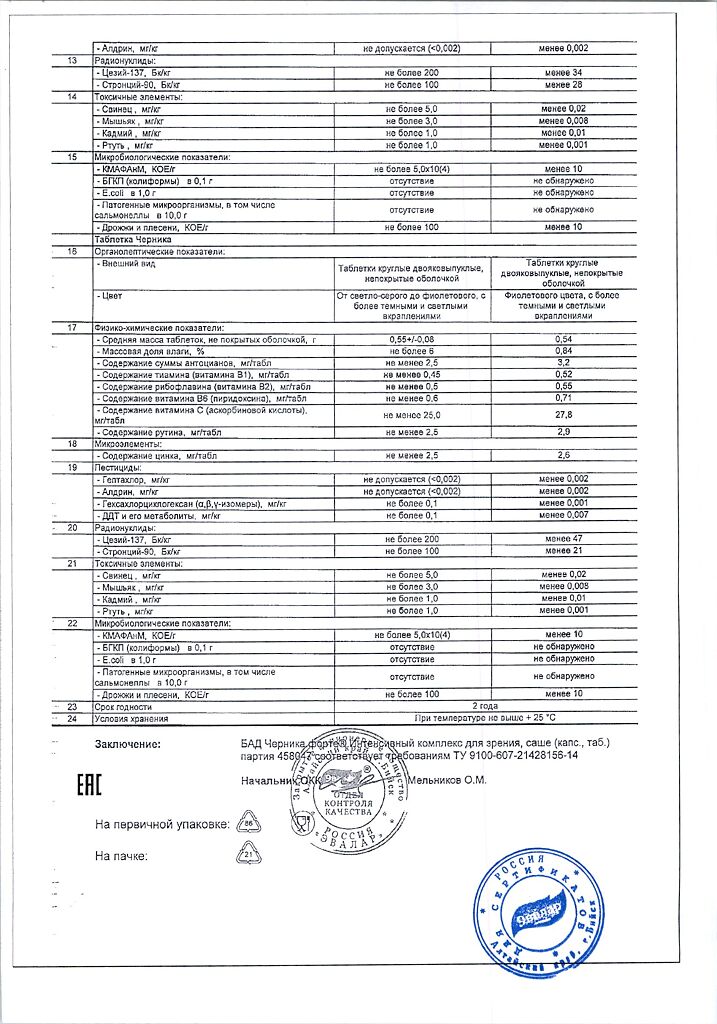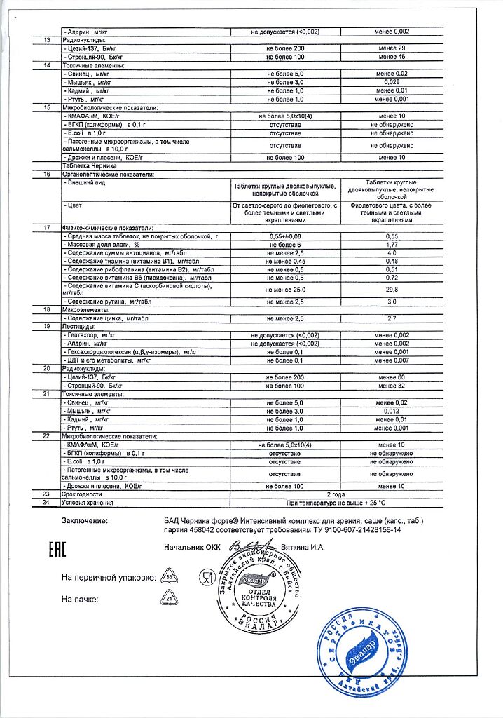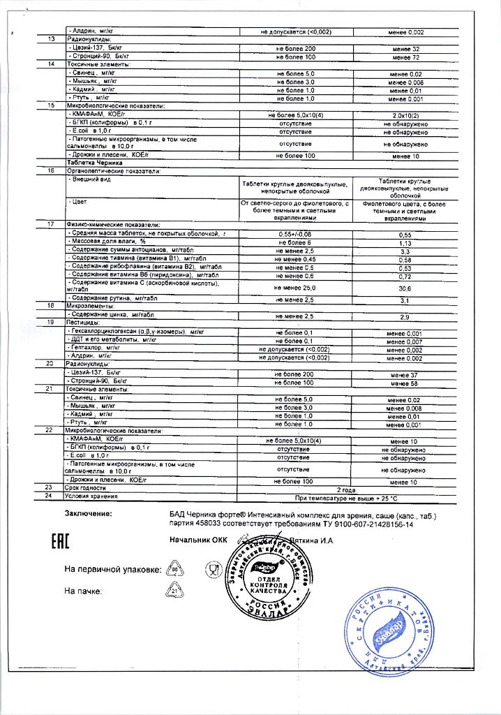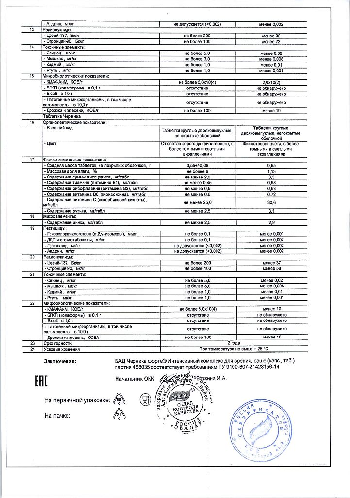 Документы Черника Форте Эвалар Интенсивный комплекс саше по 1,0 г 30 шт