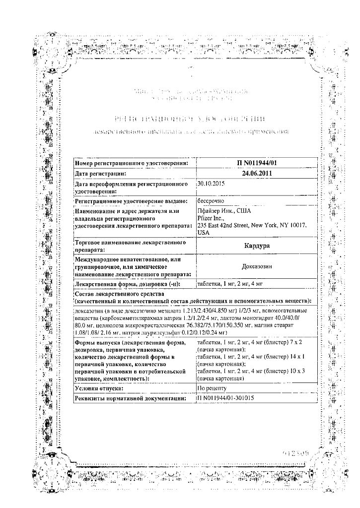 • 📒 Подробная инструкция по применению Кардура таблетки 1 мг 30 шт