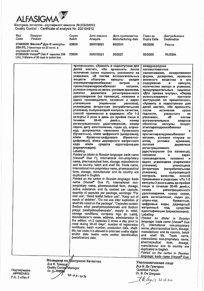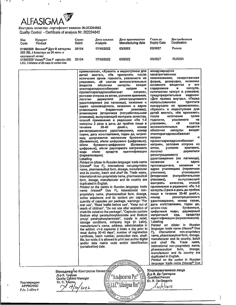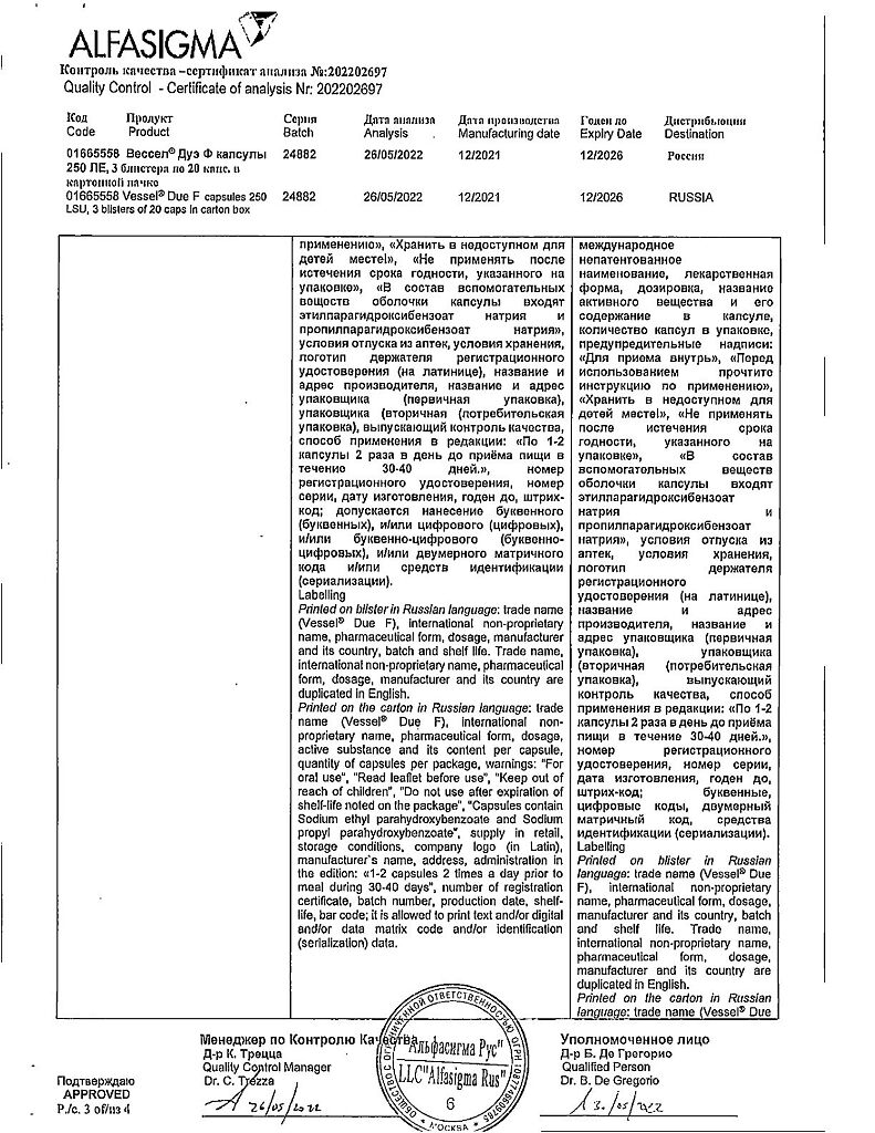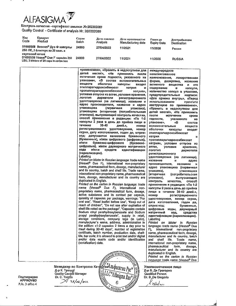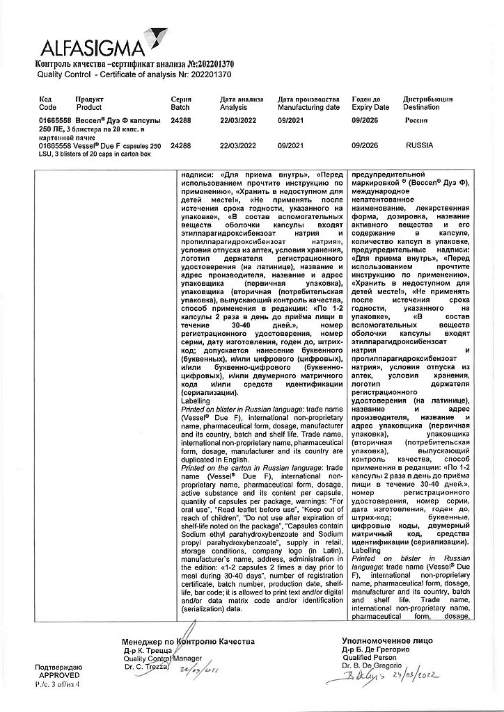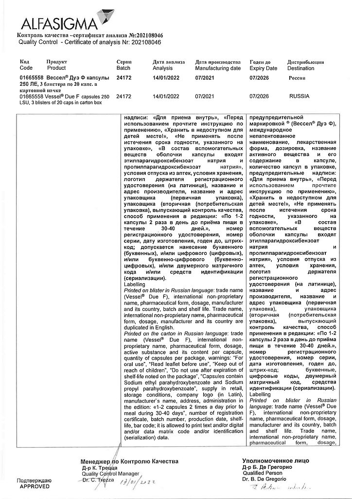 • 📒 Подробная инструкция по применению Вессел Дуэ Ф капсулы 250 ле 60 шт