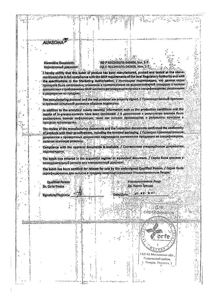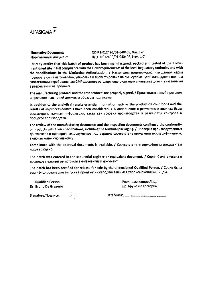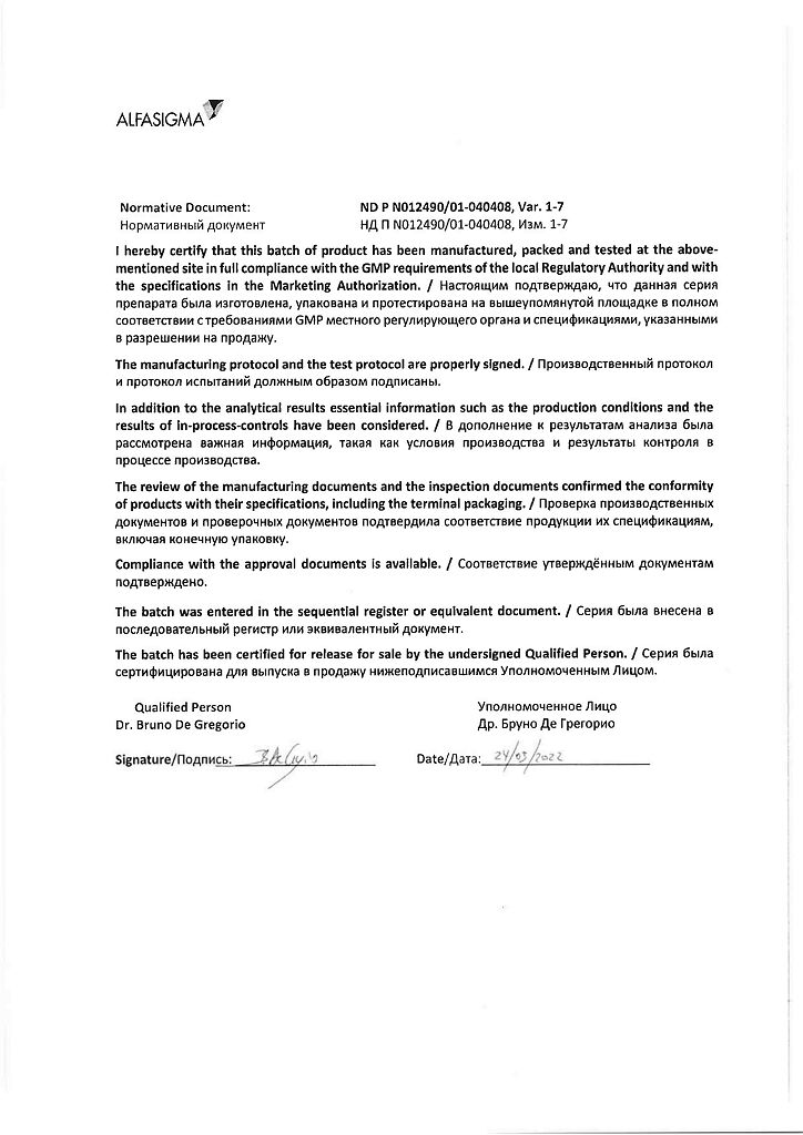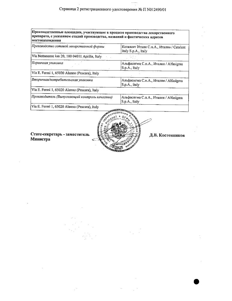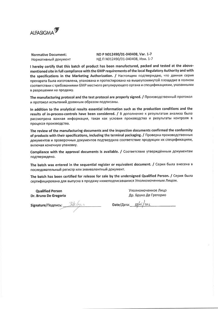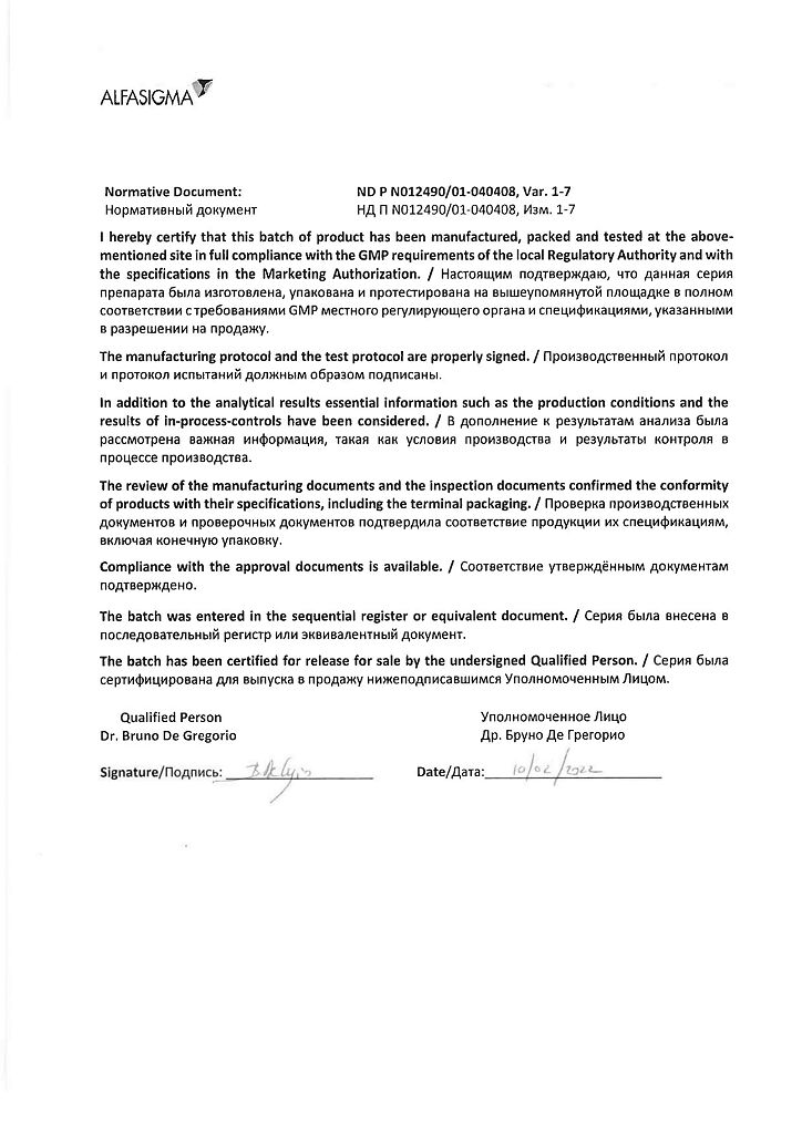 Производитель: Каталент Италия С.П.А., Италия