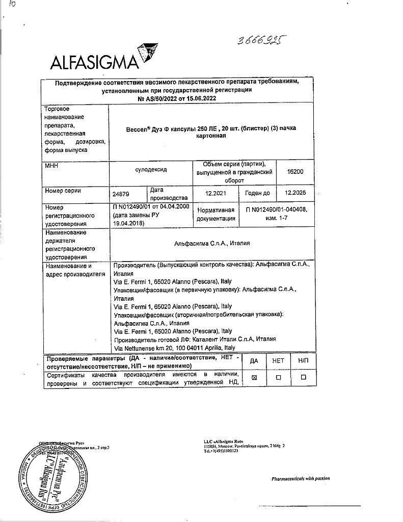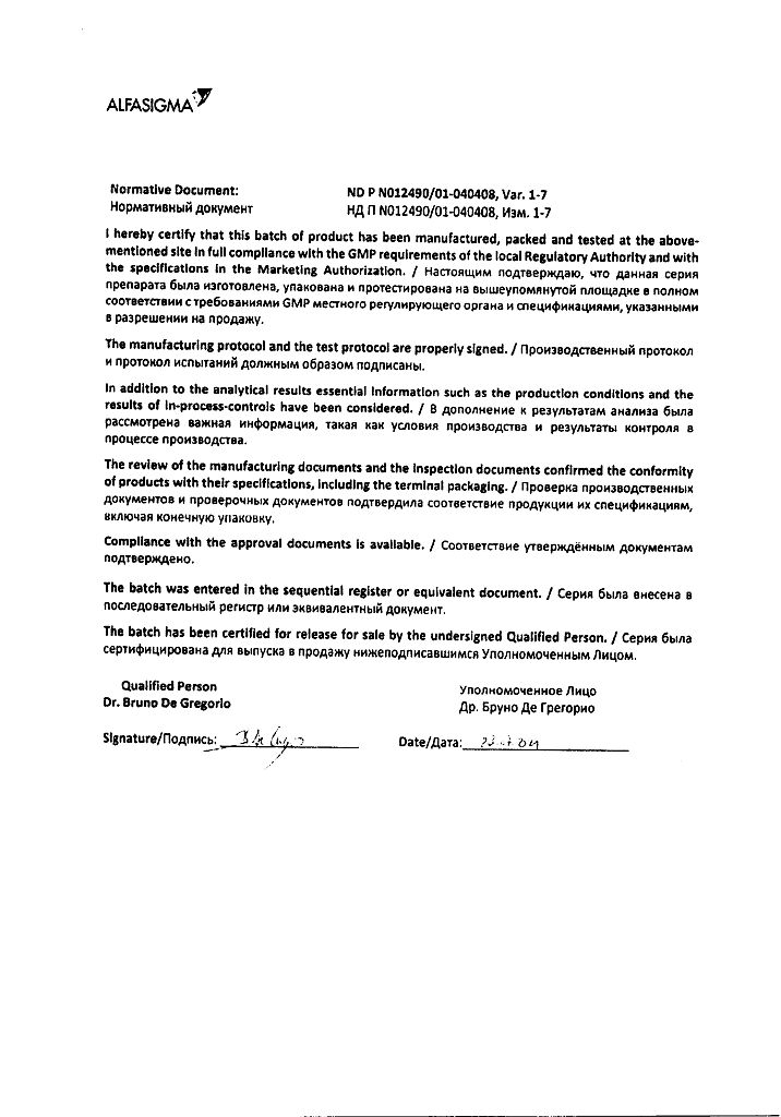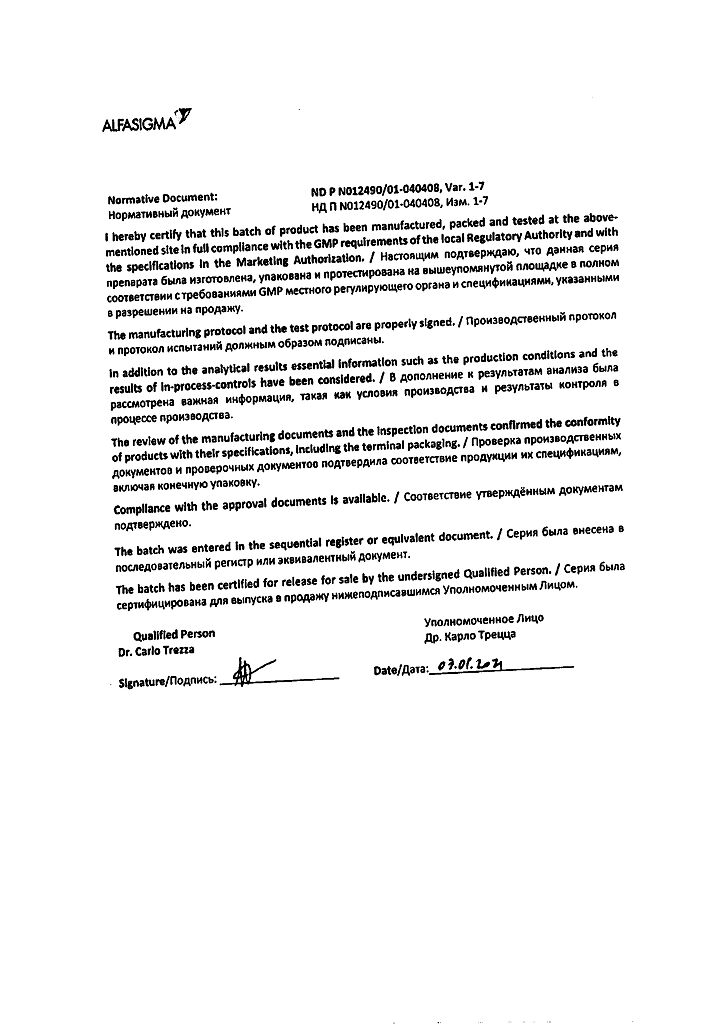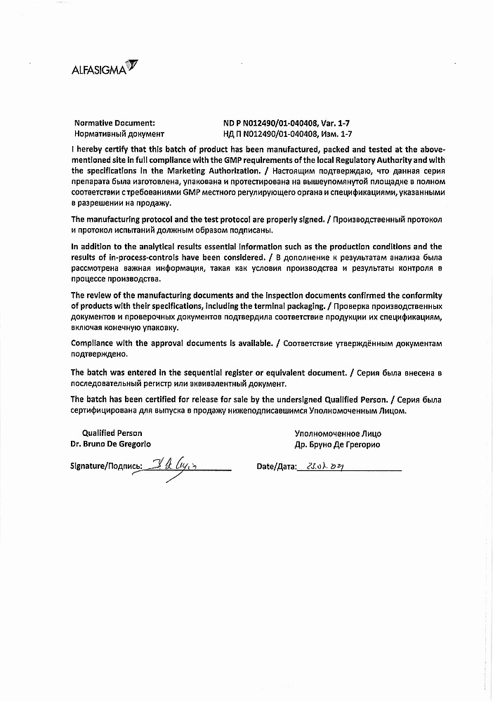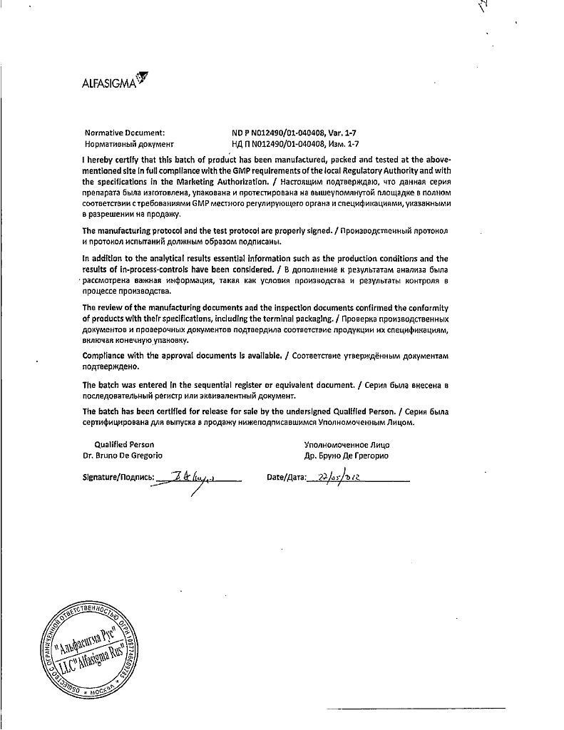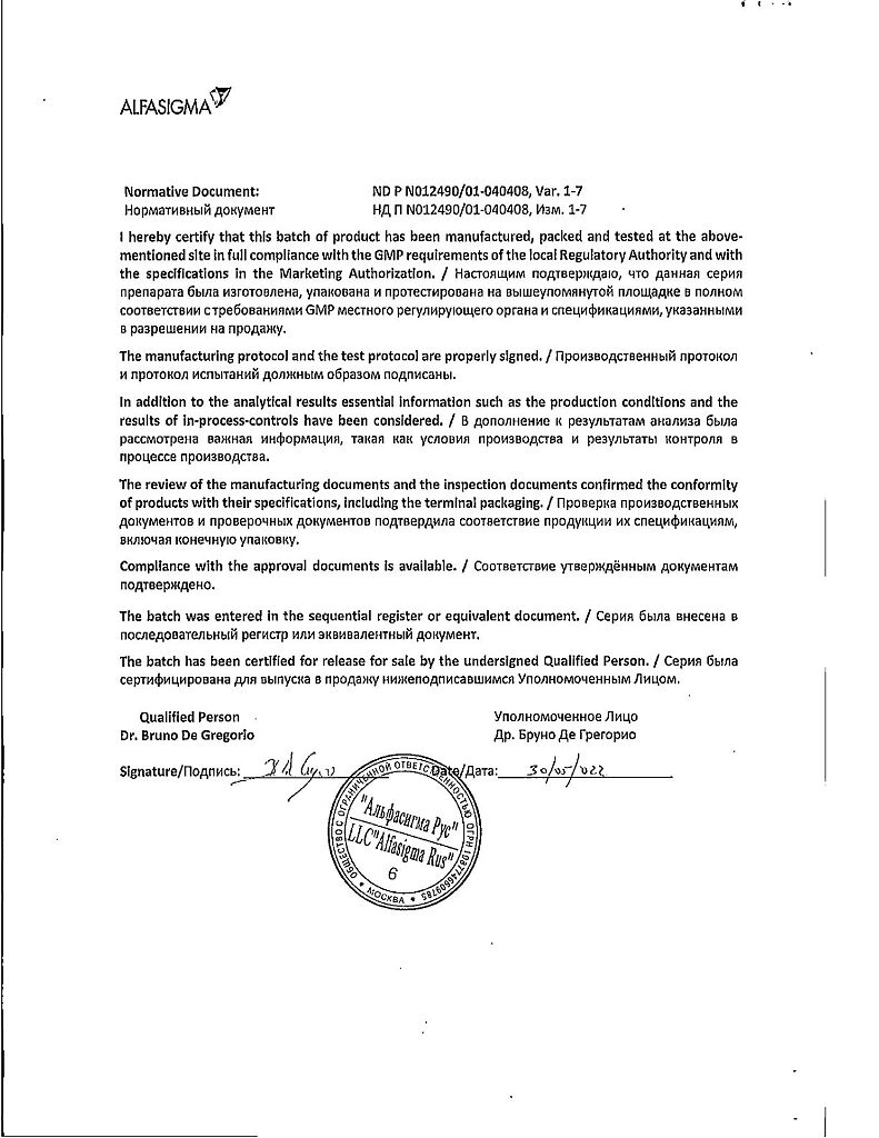 Производитель: Каталент Италия С.П.А., Италия