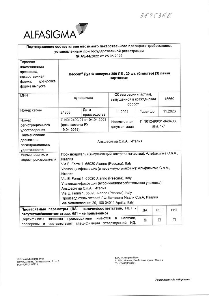 Действующее вещество: Сулодексид