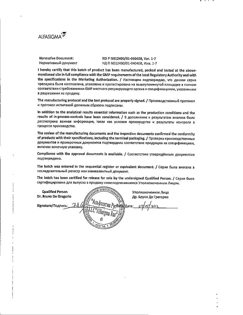 Страница носит информационный характер о наличии препаратов. Перед назначением и применением проконсультируйтесь с врачом