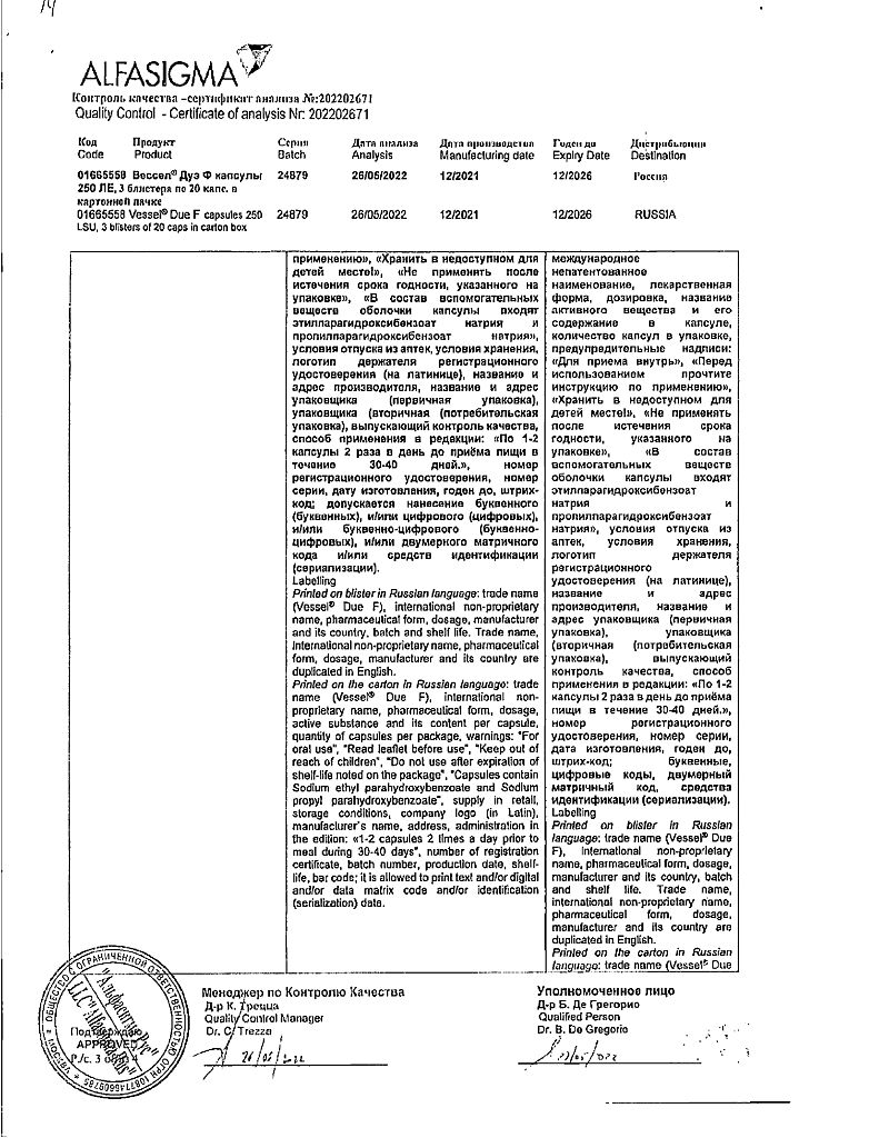 • 📲 Цена на Вессел Дуэ Ф капсулы 250 ле 60 шт ниже в нашем приложении