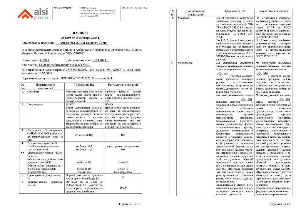 Документы Амброксол-АЛСИ таблетки 30 мг 30 шт