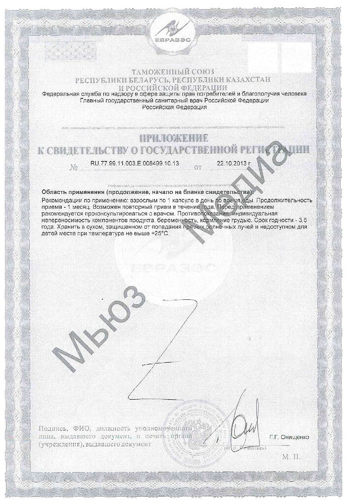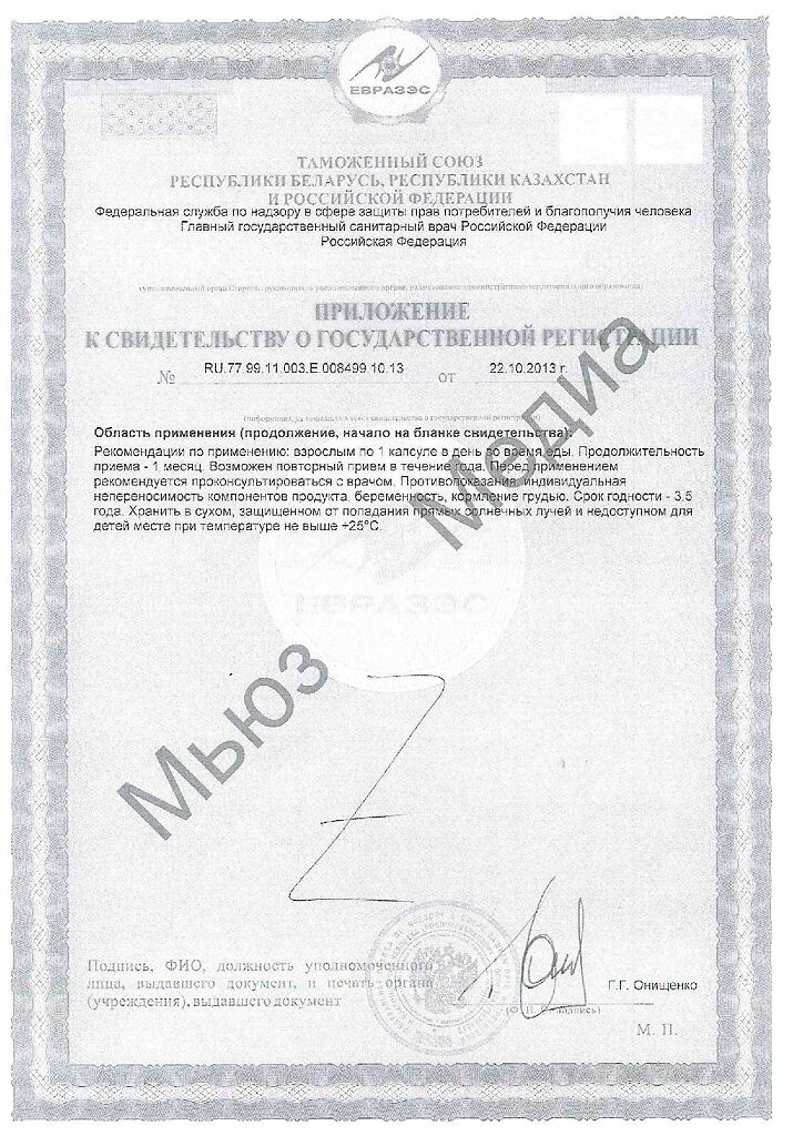 Вспомогательные компоненты Оболочка капсулы (целлюлоза), рисовая мука, стеариновая кислота (Е570, стабилизатор)