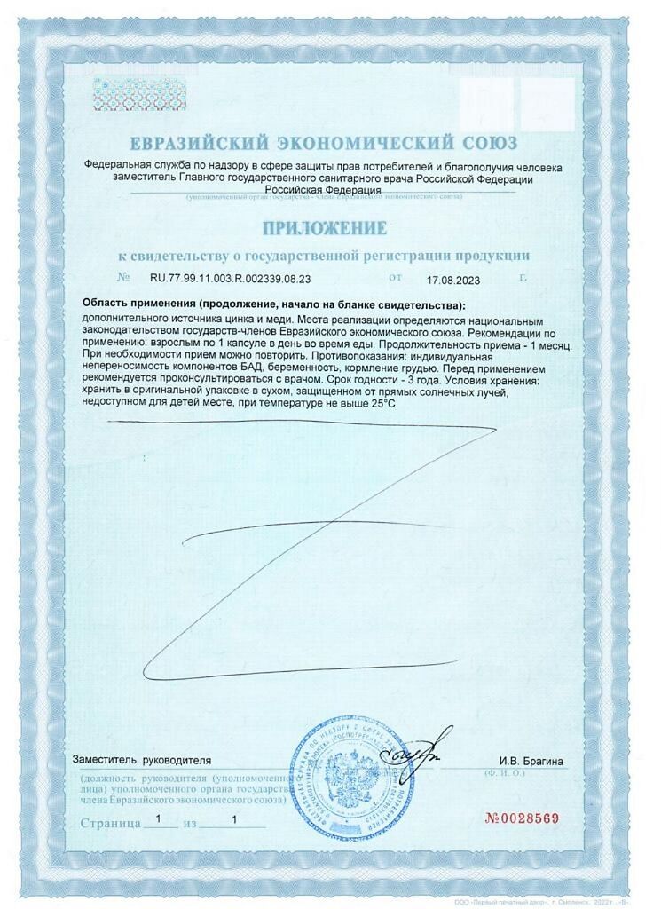 Состав Цинка метионин, меди аминохелат, оболочка капсулы (целлюлоза), рисовая мука, стеариновая кислота (Е570, стабилизатор)
