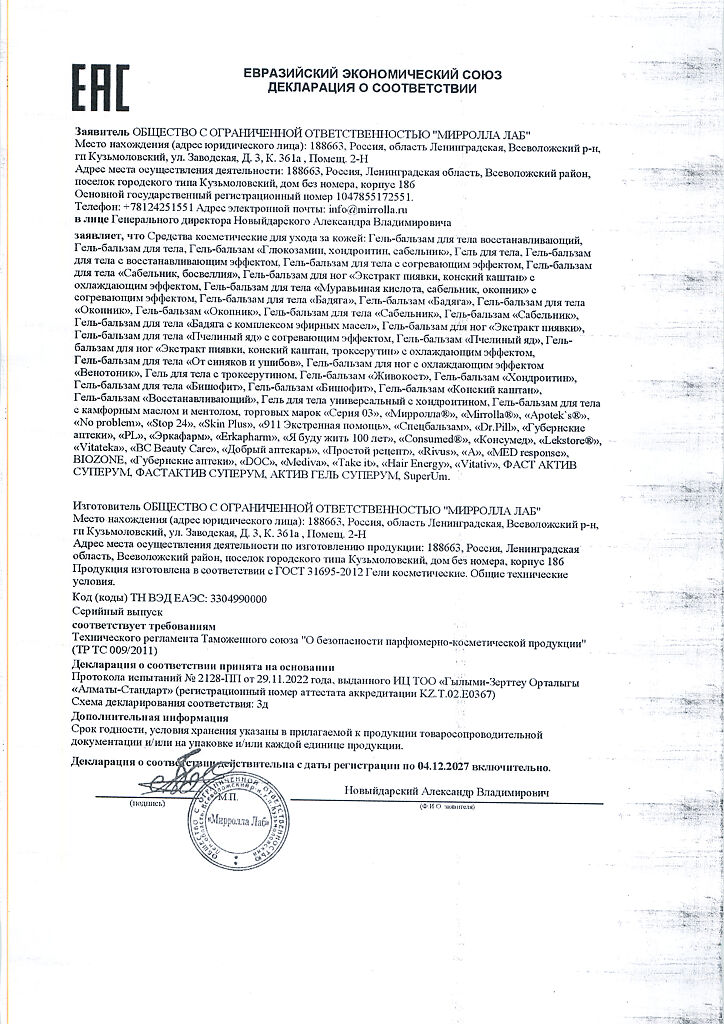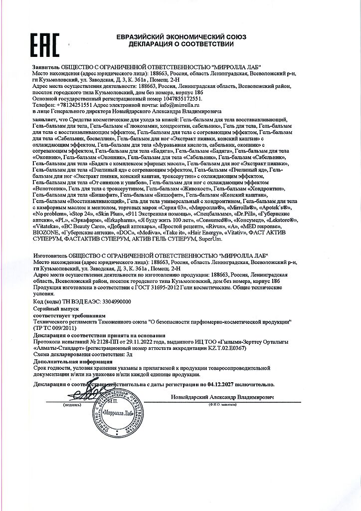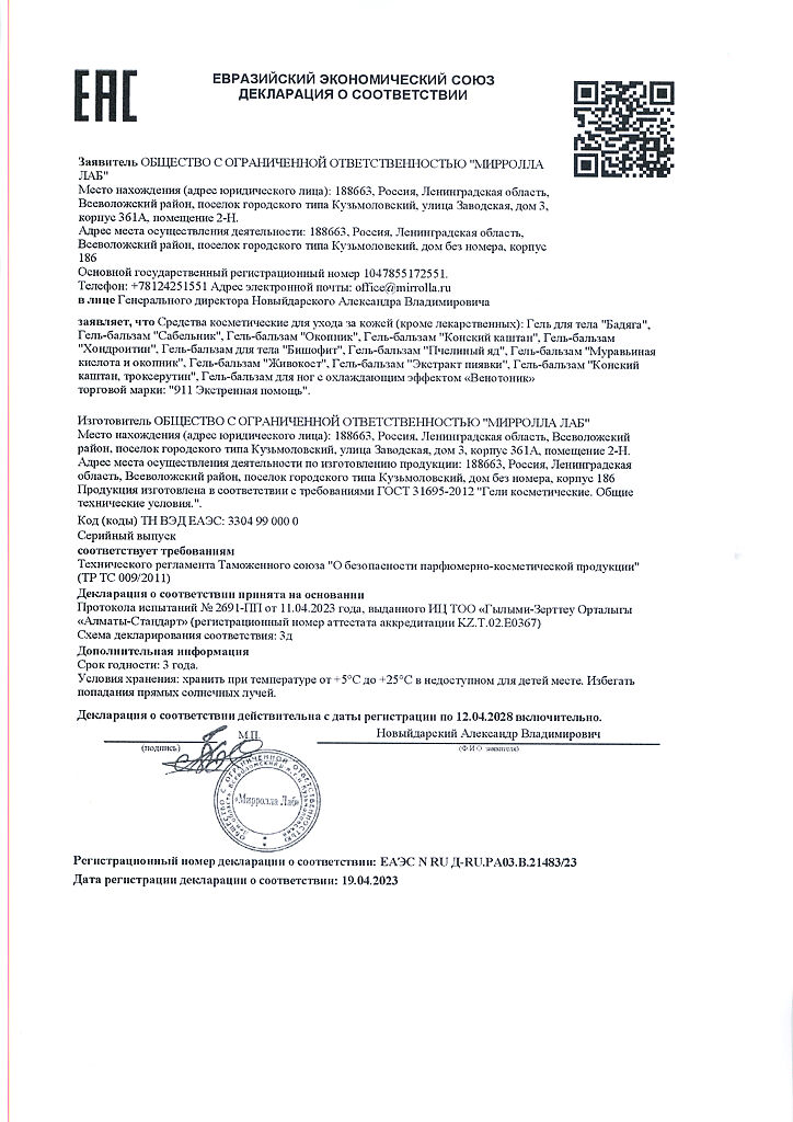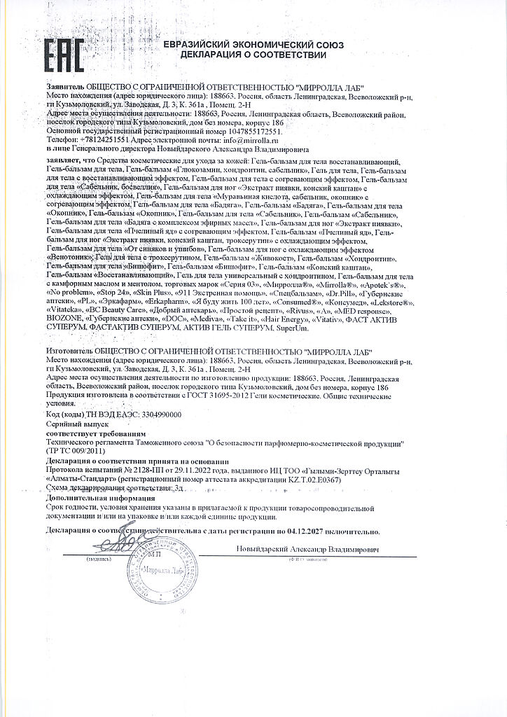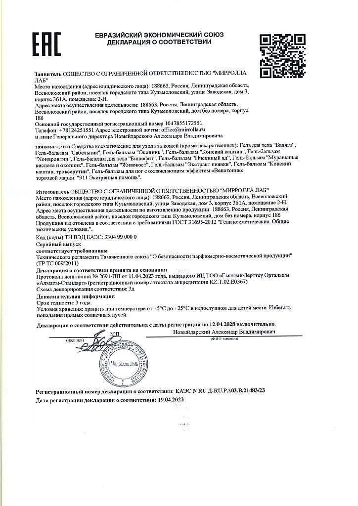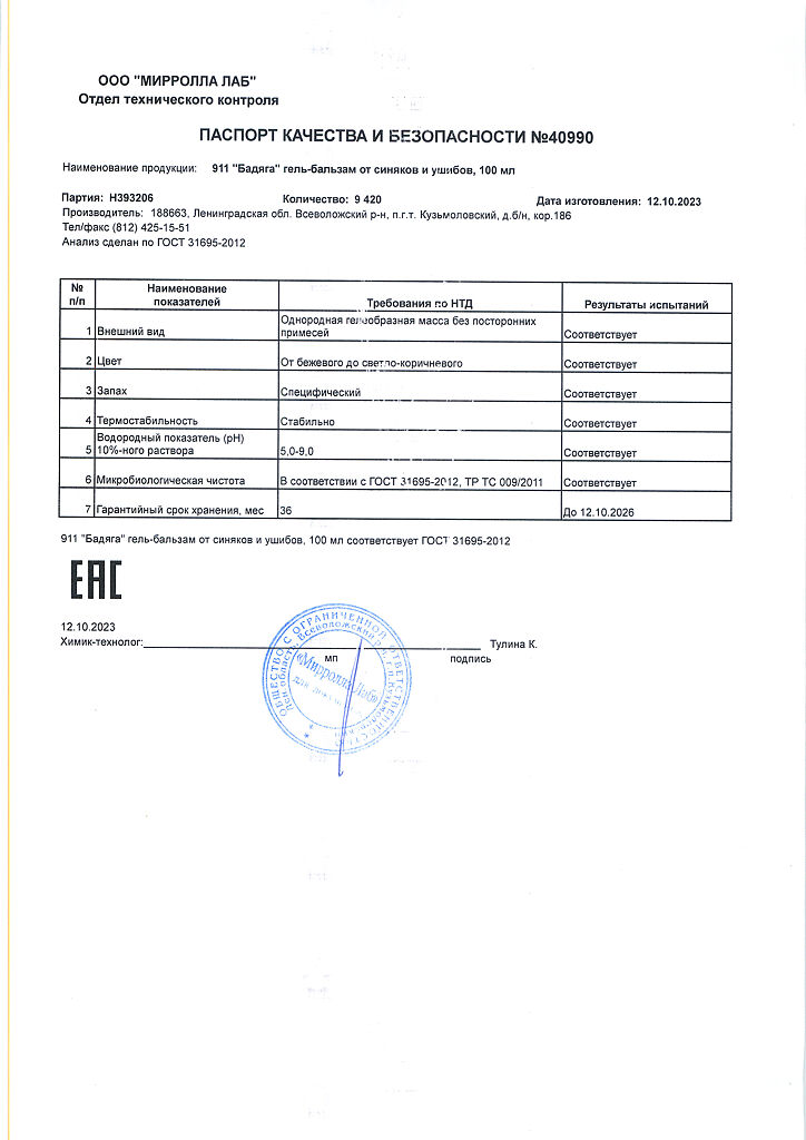 • 📒 Подробная инструкция по применению 911 Экстренная помощь Бадяга Гель для тела 100 мл 1 шт