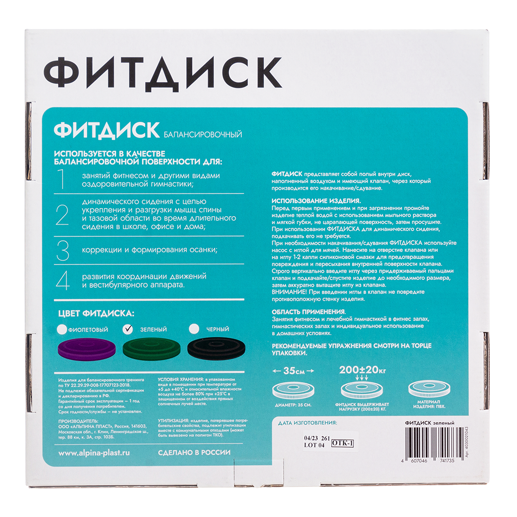 • 📒 Подробная инструкция по применению Диск медицинский балансировочный Фитдиск зеленый 350 мм 1 шт