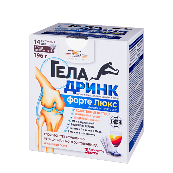 Суточная доза для взрослых и детей старше 14-ти - лет 14 граммов порошка. Одной упаковки Геладринк Форте Люкс хватает на 14 длей приема.