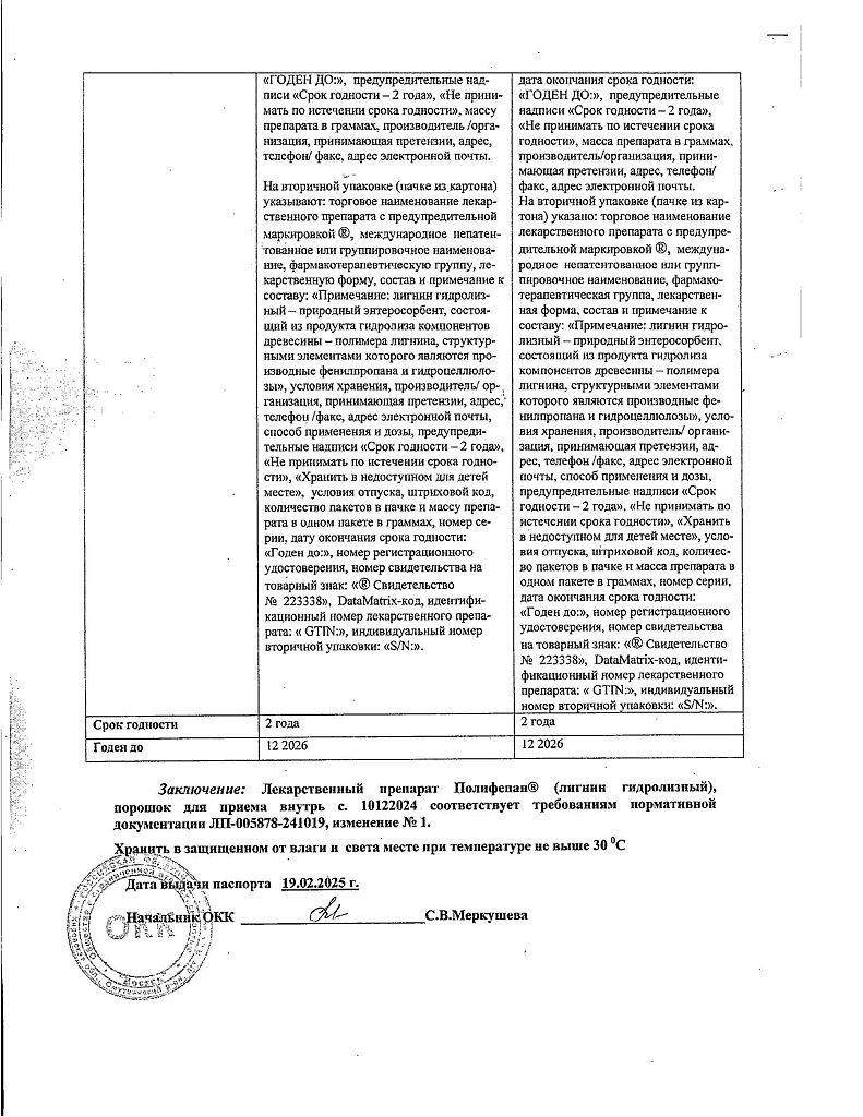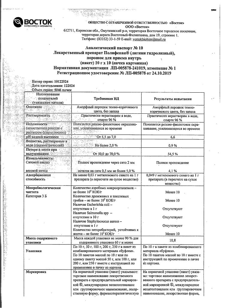 Документы Полифепан порошок для приема внутрь 10 г 10 шт