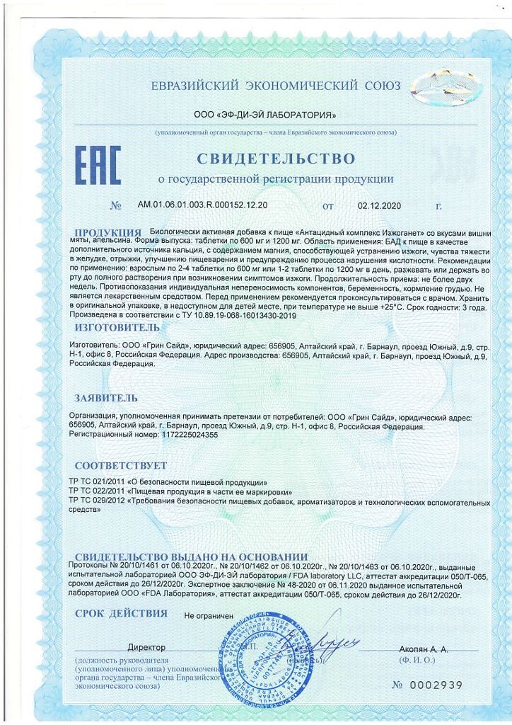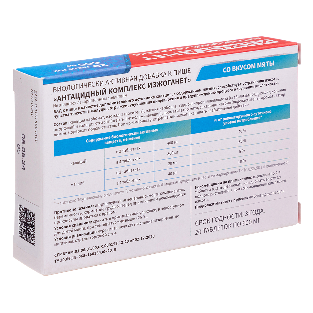 Документы Green Side Антацидный комплекс Изжоганет таблетки по 600 мг со вкусом мяты 20 шт