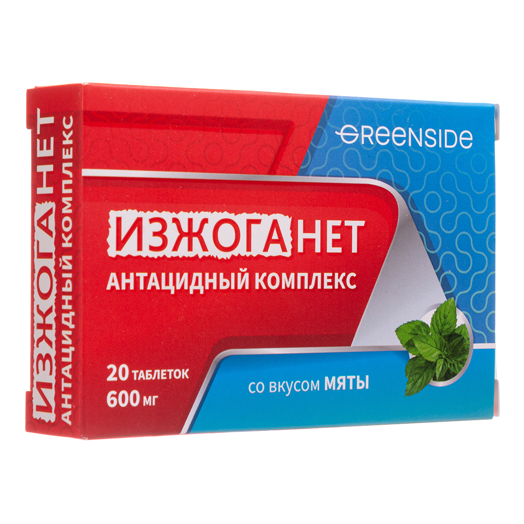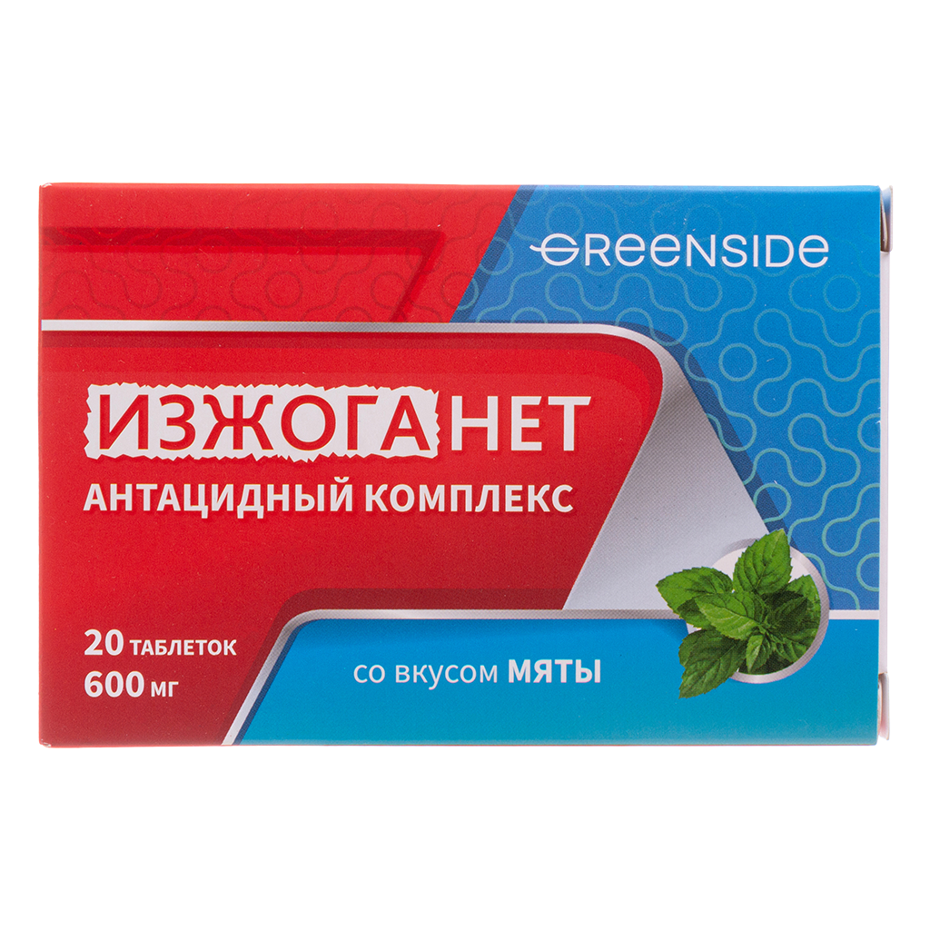 Green Side Антацидный комплекс Изжоганет таблетки по 600 мг со вкусом мяты 20 шт