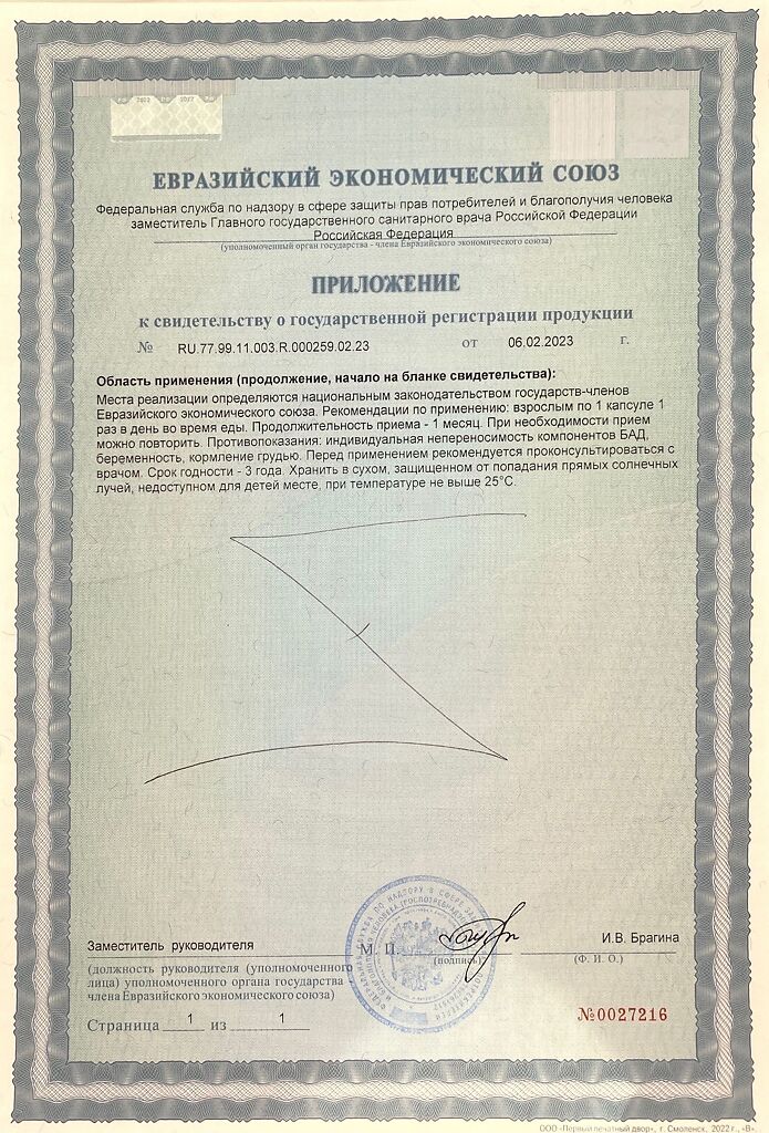 Взрослым принимать по 1 капсуле 1 раз в день во время еды. Продолжительность приема 1 месяц. При необходимости прием можно повторить.