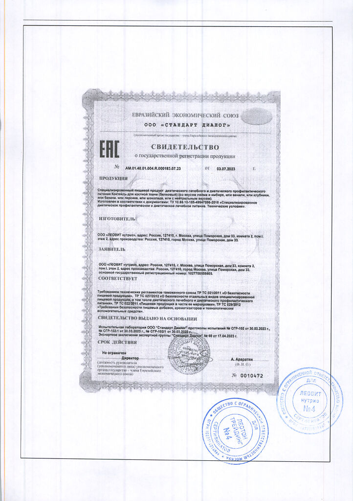 Документы Леовит Pharma Коктейль белковый для костной ткани с нейтральным вкусом пакет 20 г 1 шт