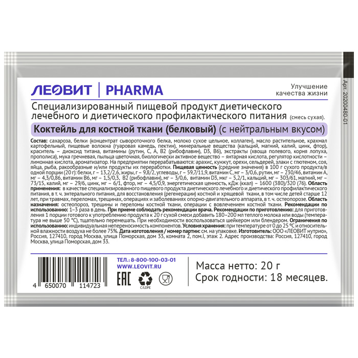 • 🏪 Купить Леовит Pharma Коктейль белковый для костной ткани с нейтральным вкусом пакет 20 г 1 шт можно на сайте и в наших аптеках в Тынде