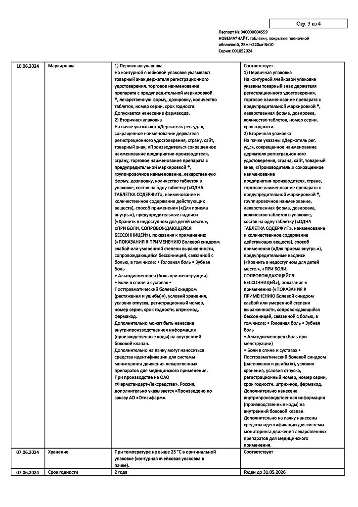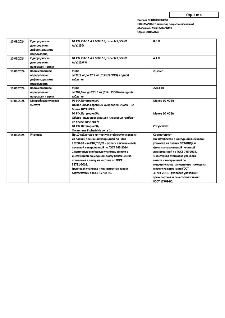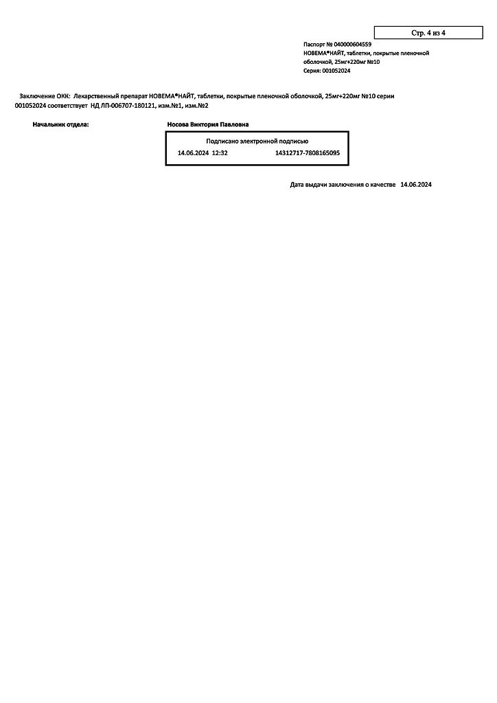 Документы Новема Найт таблетки покрыт.плен.об. 25 мг+220 мг мг 10 шт