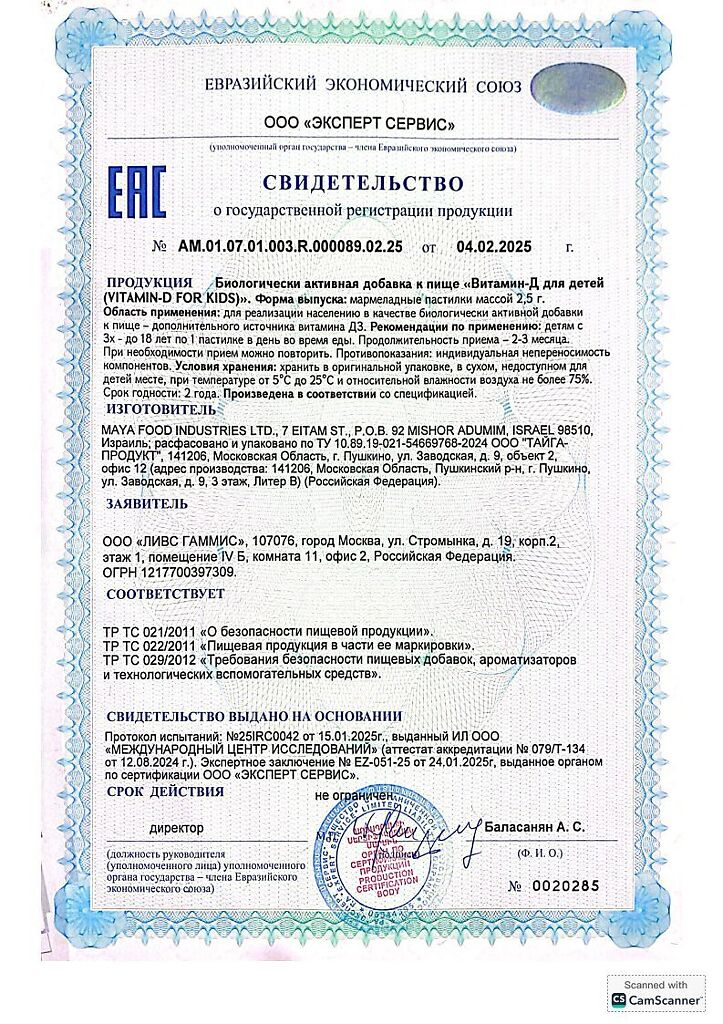 Документы LIVS Витамин-Д для детей /Vitamin D For Kids мармеладные пастилки массой 2,5 г 60 шт