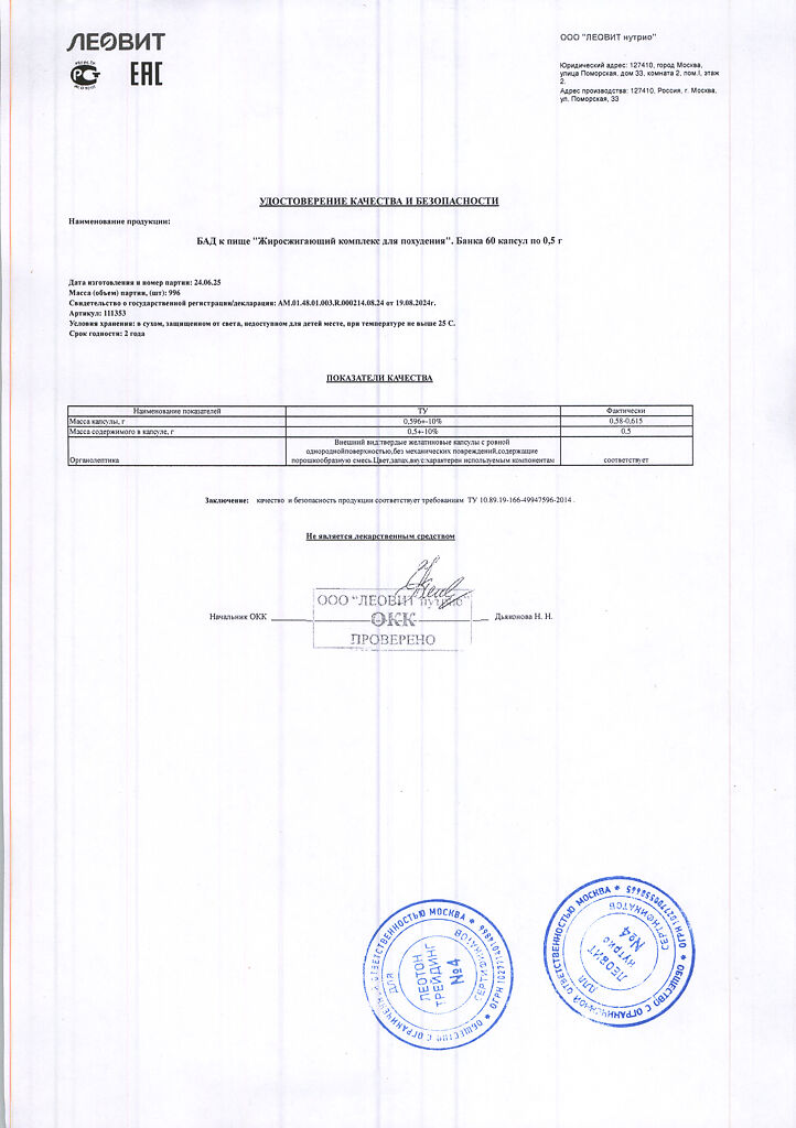 Производитель: ЛЕОВИТ нутрио, Россия