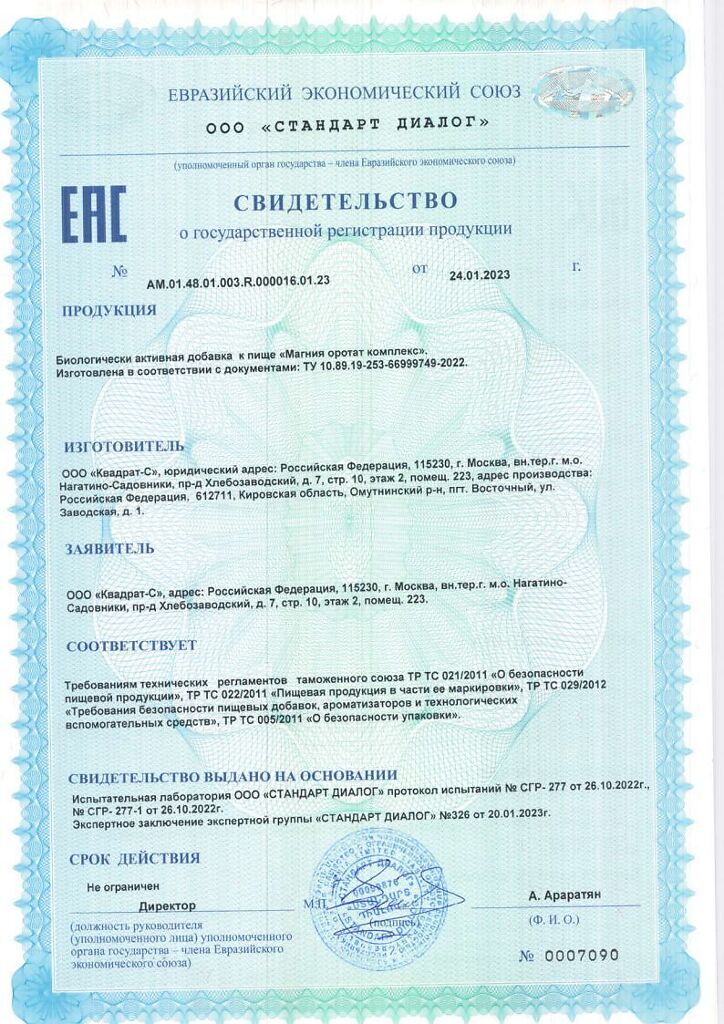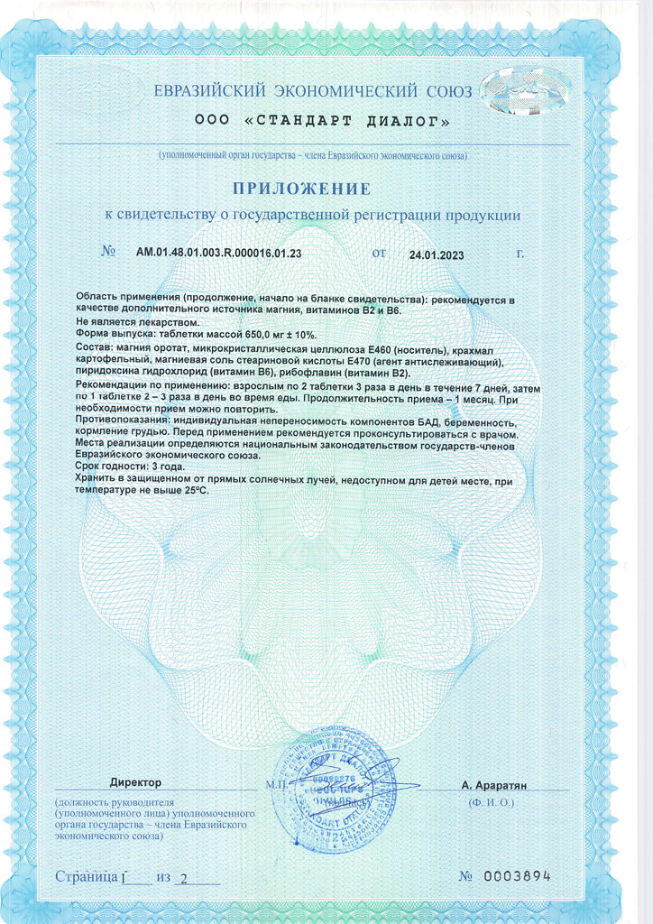 Документы Витамир Магния оротат комплекс таблетки массой 650 мг 50 шт