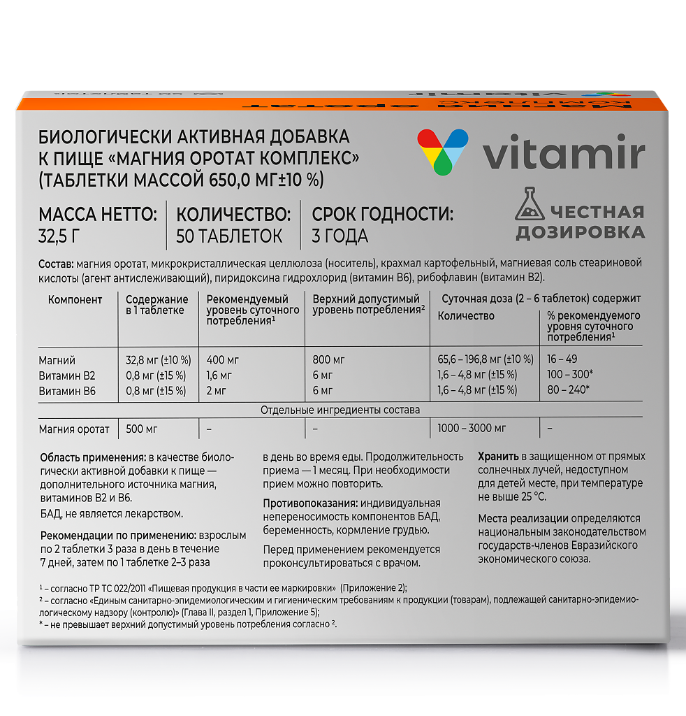 Витамир Магния оротат комплекс таблетки массой 650 мг 50 шт: отзывы покупателей и фармацевтов