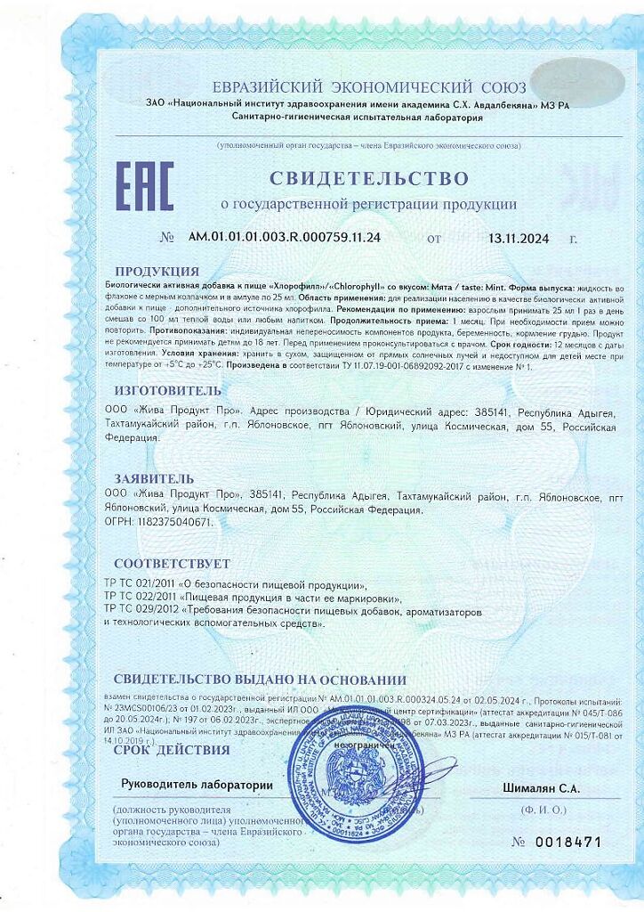 Для реализации населению в качестве биологически активной добавки к пище – дополнительного источника хлорофилла.