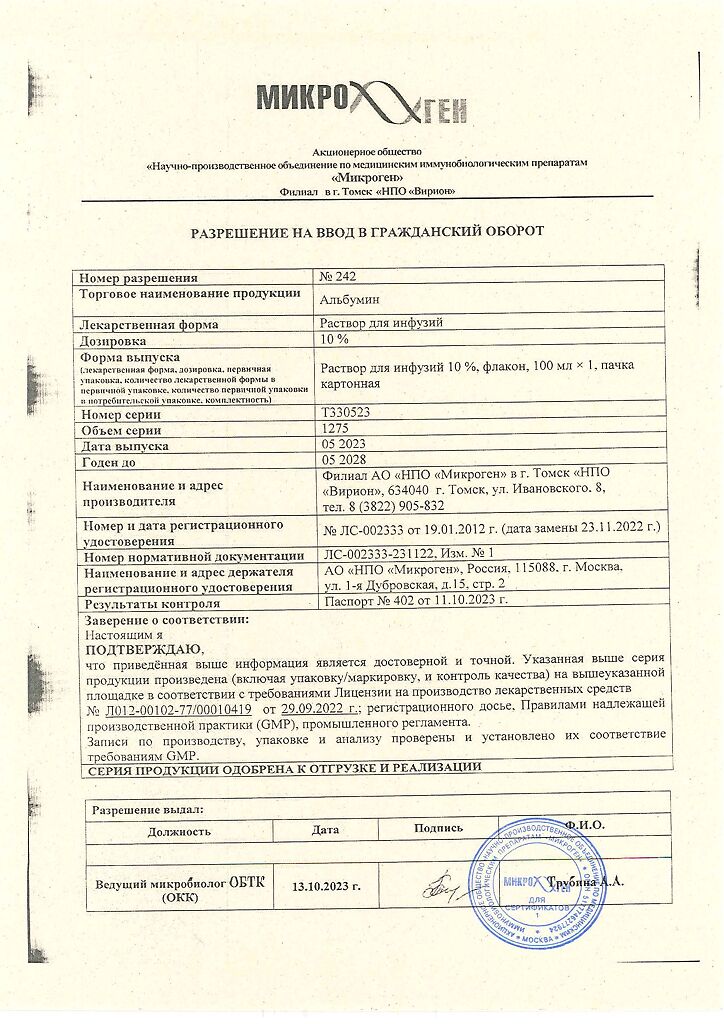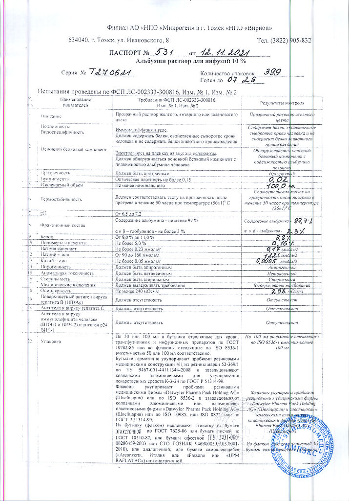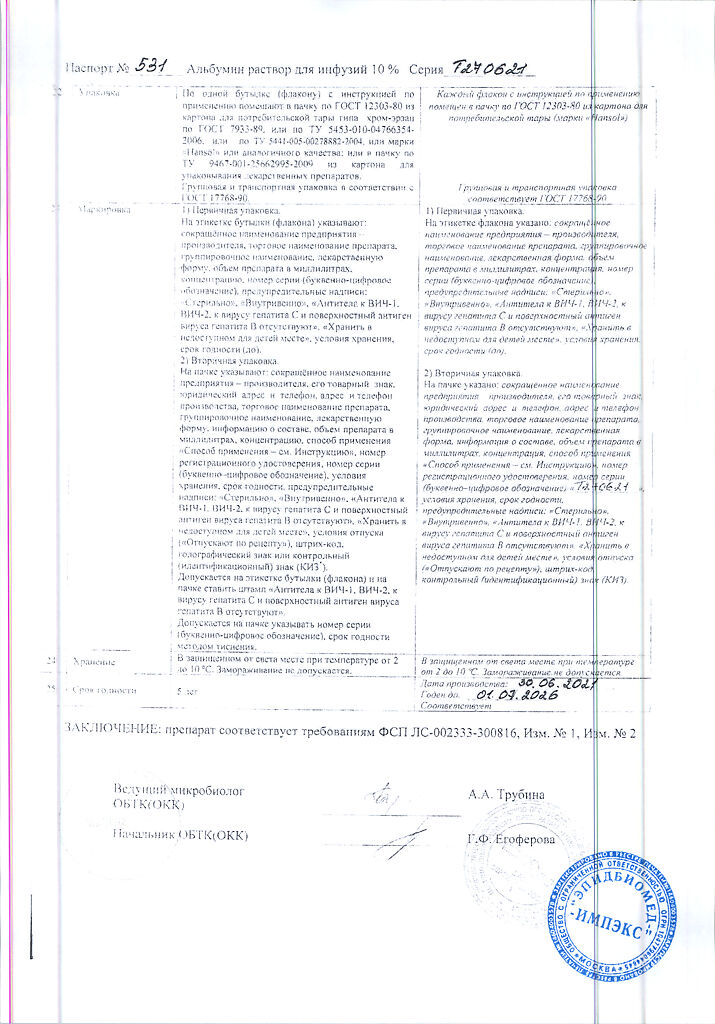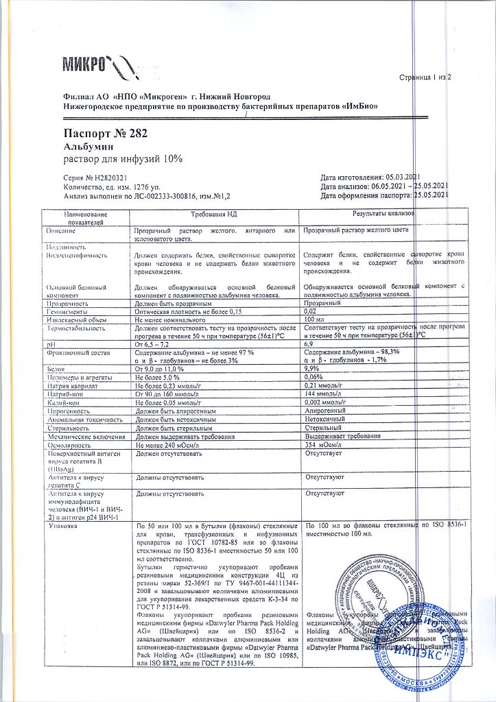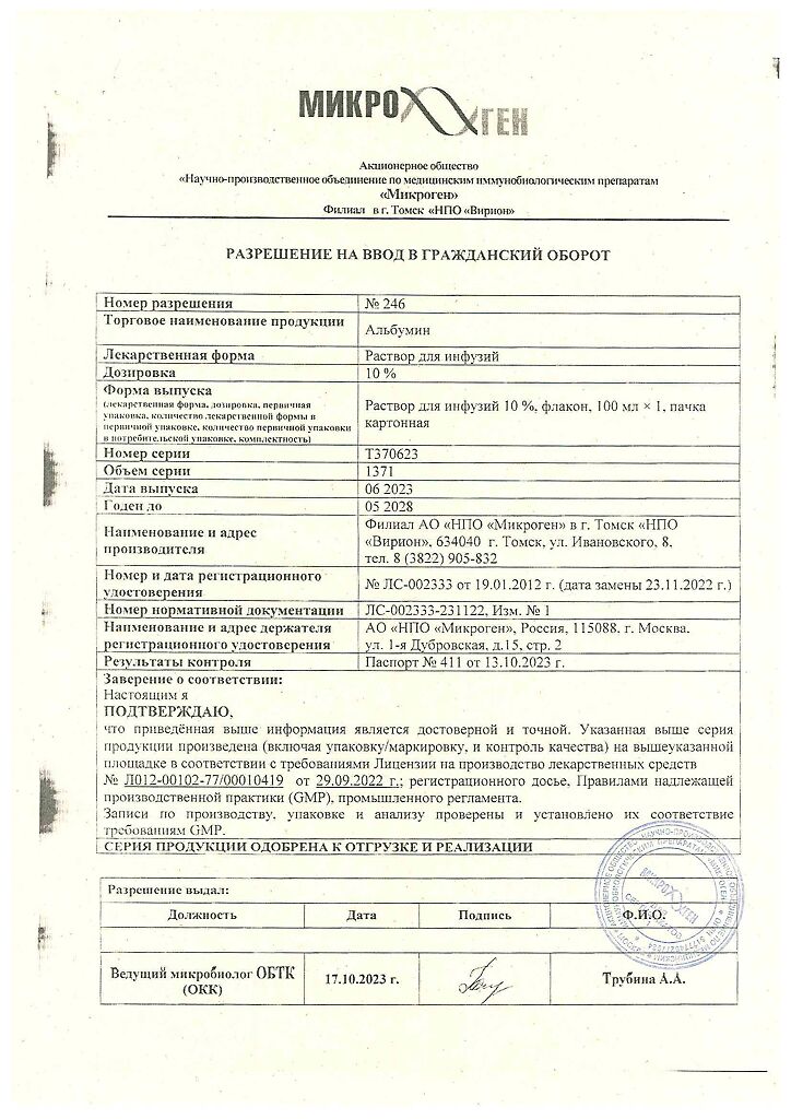 • 📒 Подробная инструкция по применению Альбумин раствор для инфузий 10 % 100 мл фл 1 шт
