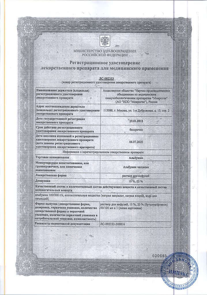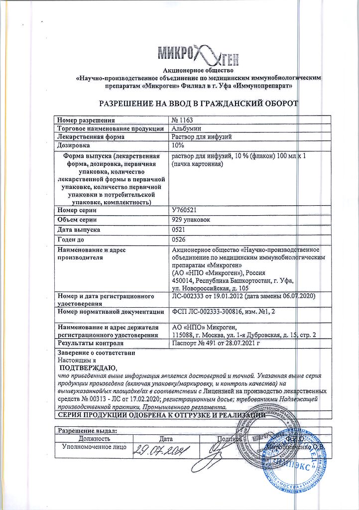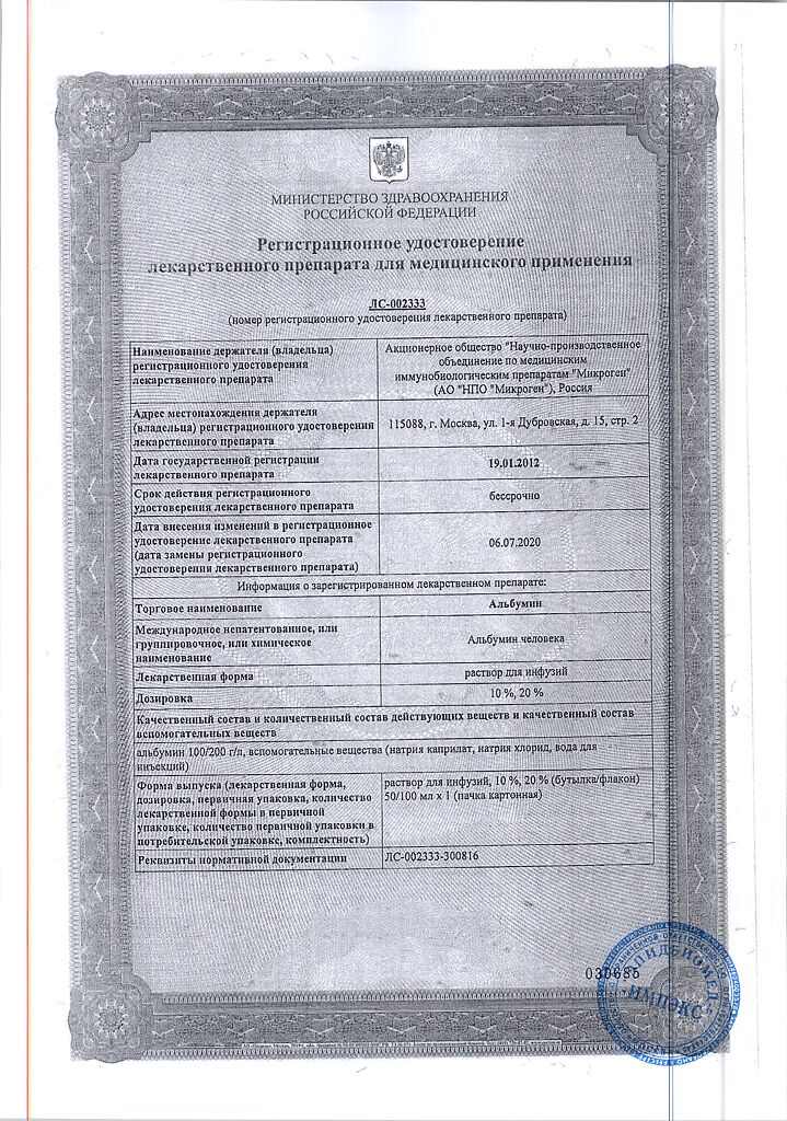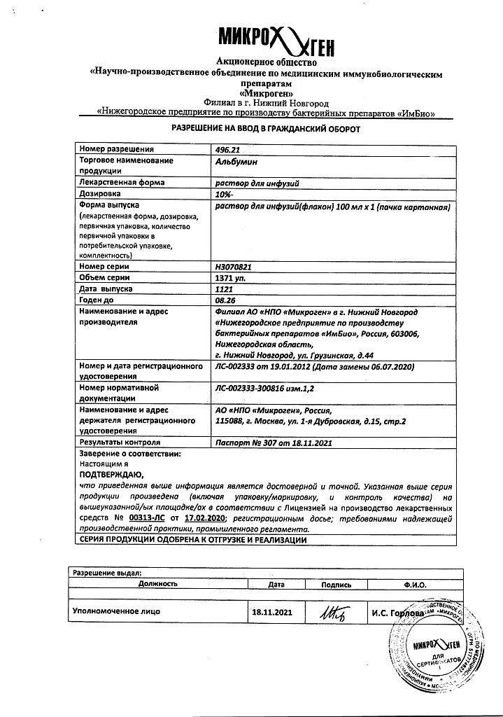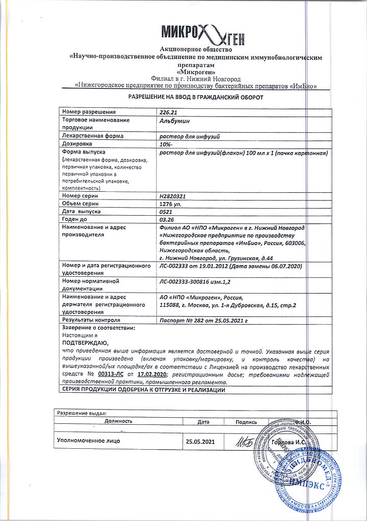 • 📒 Подробная инструкция по применению Альбумин раствор для инфузий 10 % 100 мл фл 1 шт