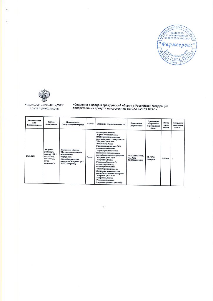 • 🏪 Купить Альбумин раствор для инфузий 10 % 100 мл фл 1 шт можно на сайте и в наших аптеках в Комсомольске-на-Амуре