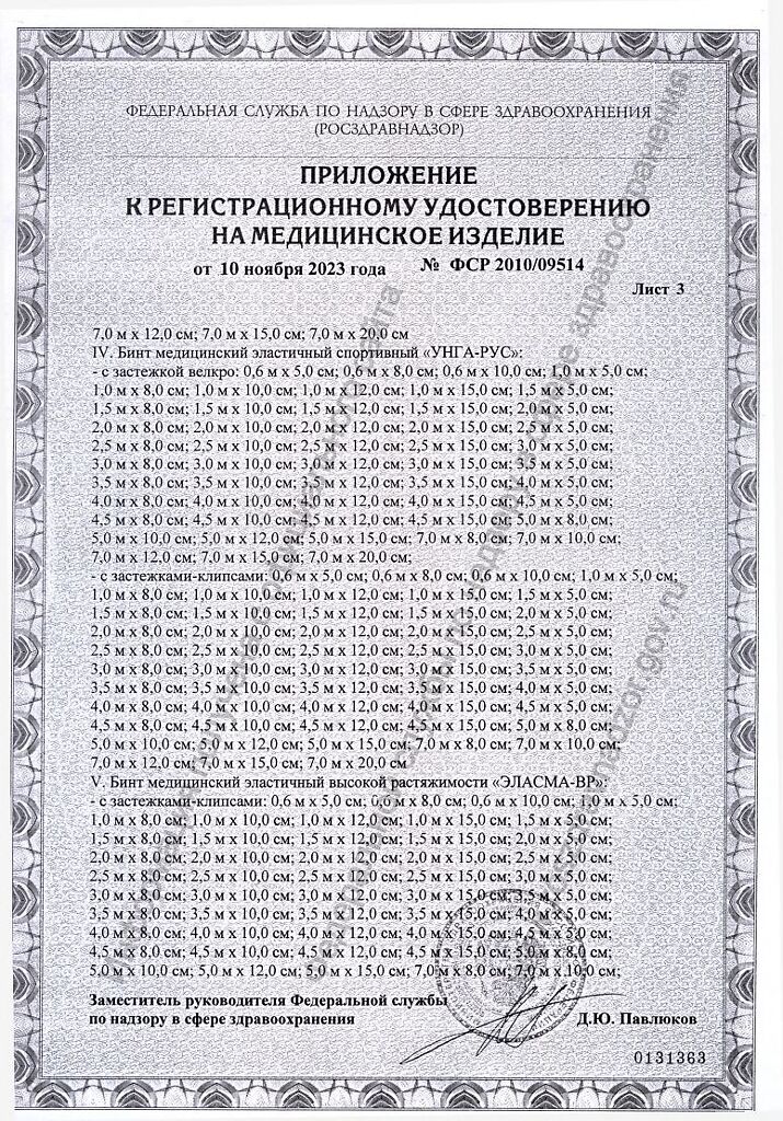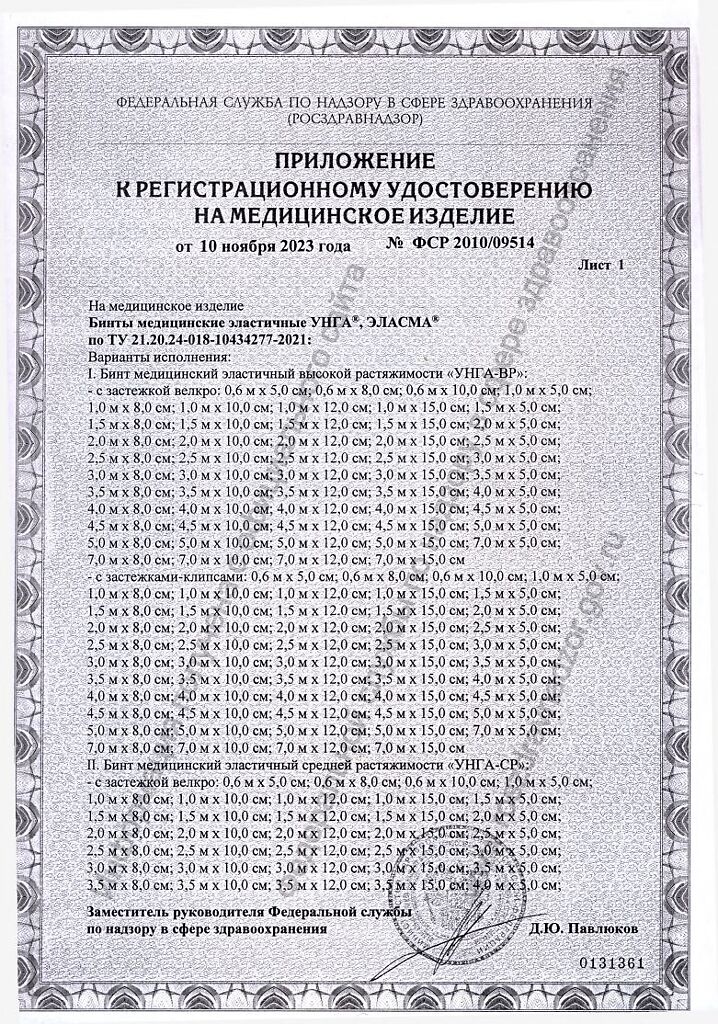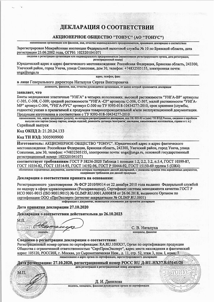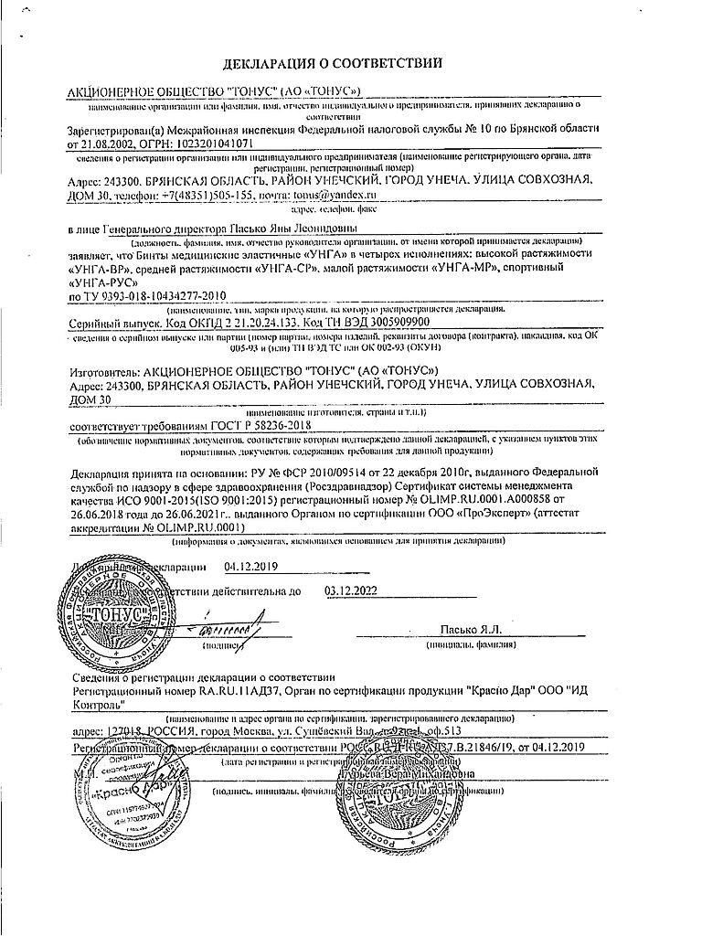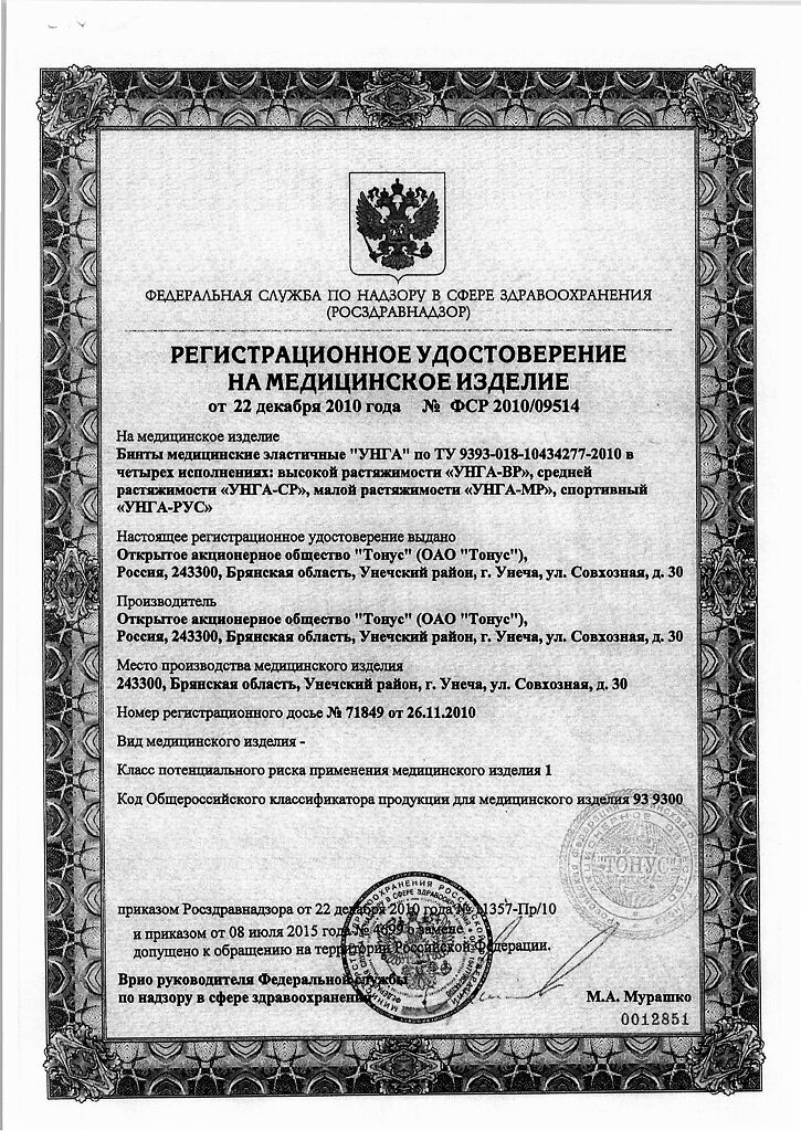 Бинты УНГА-ВР обеспечивают лечебное давление в интервале от 14 до 24 мм рт.ст., имеют плотность 480 г/м2.