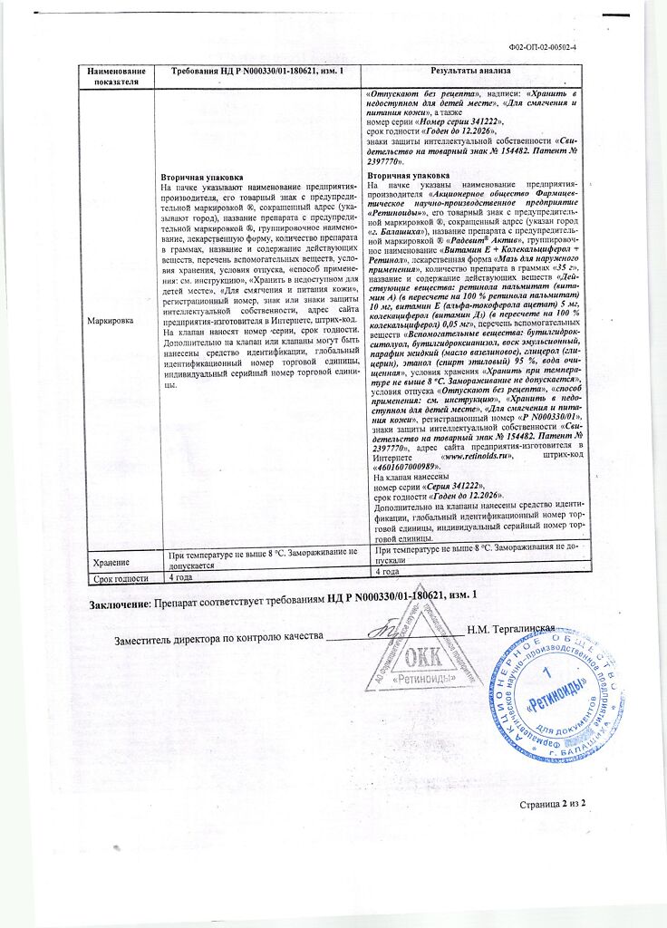 Производитель: Ретиноиды АО, Россия
