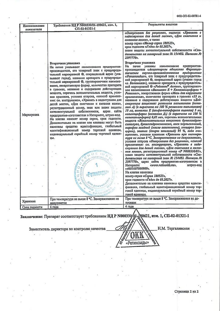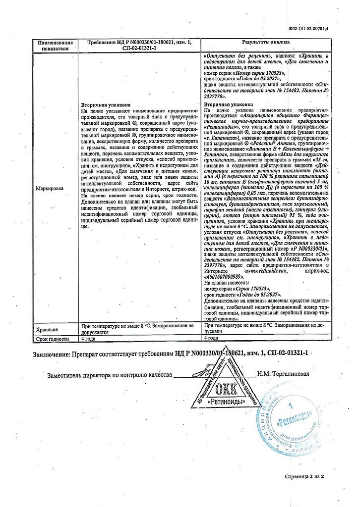 • 📒 Подробная инструкция по применению Радевит Актив мазь для наружного применения 35 г 1 шт