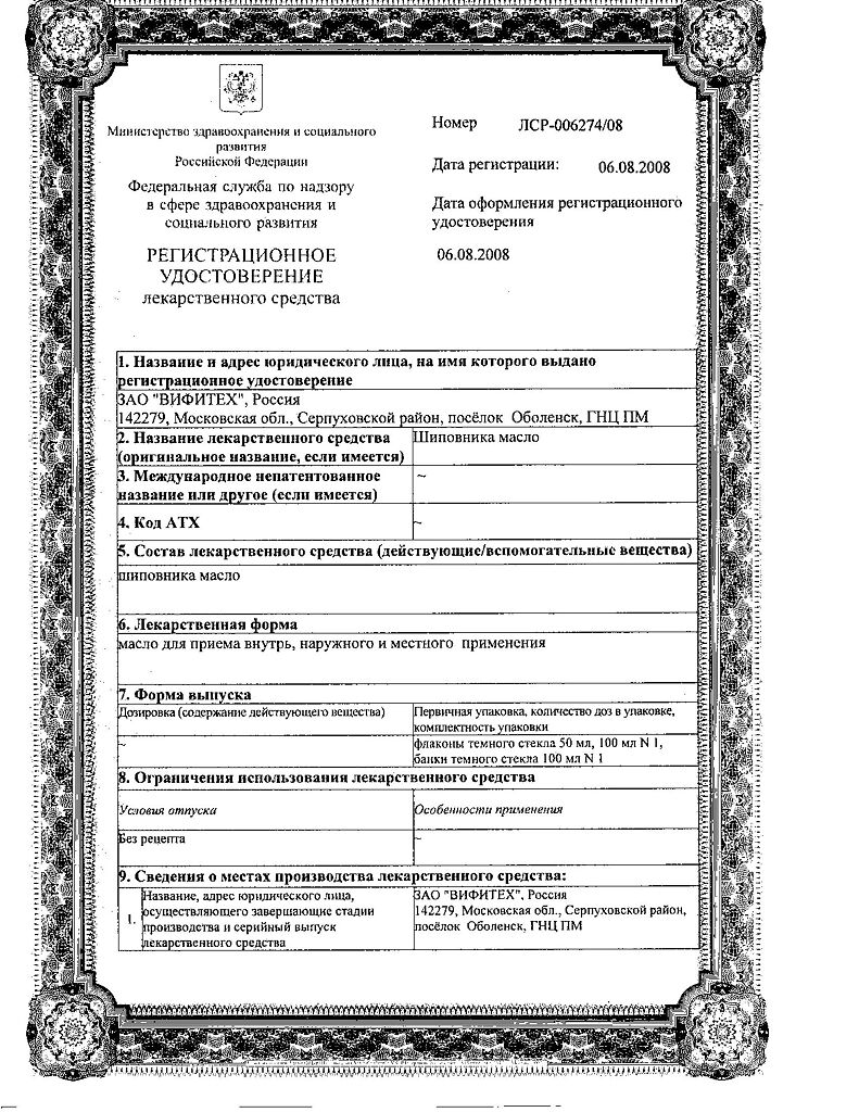 Документы Шиповник масло масло для местного применения 50 мл 1 шт