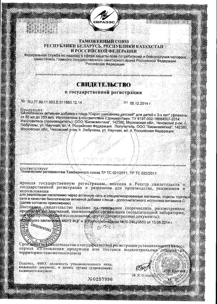 Документы Сироп шиповника детский с 3-х лет фл по 100 мл 1 шт