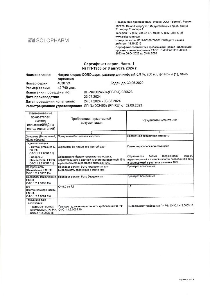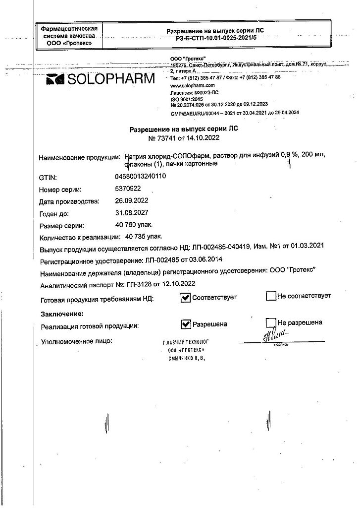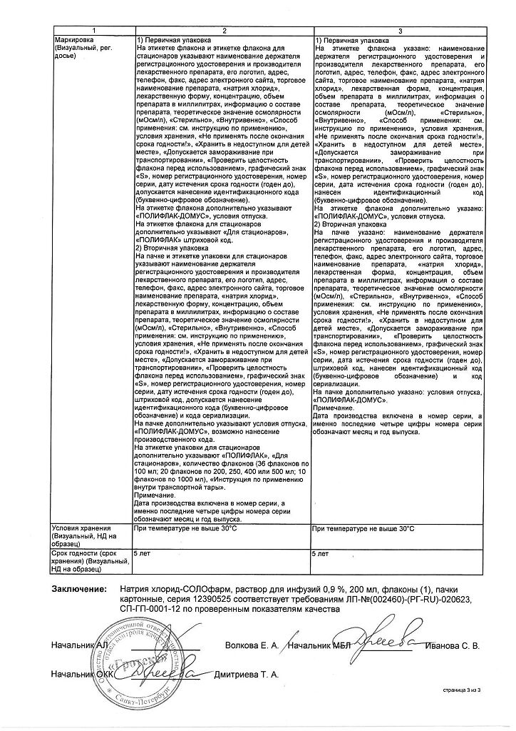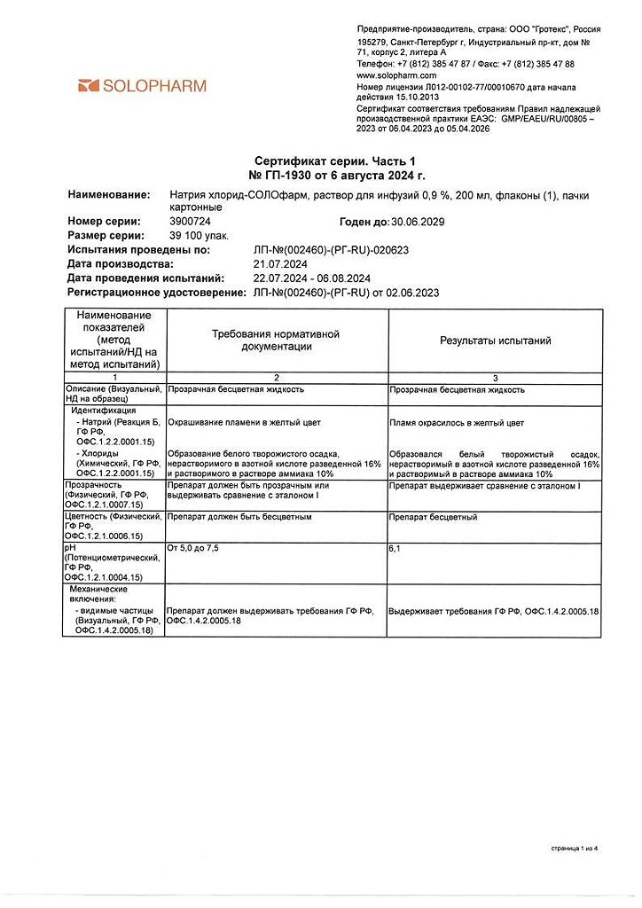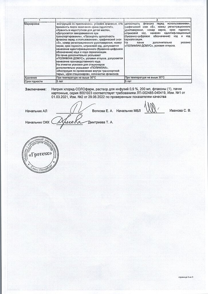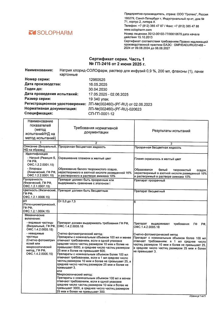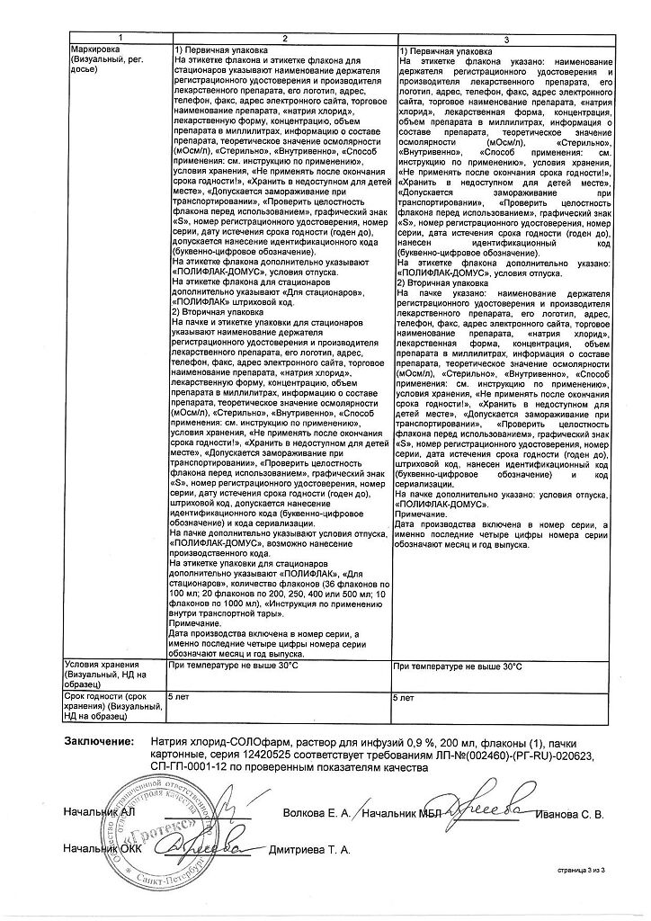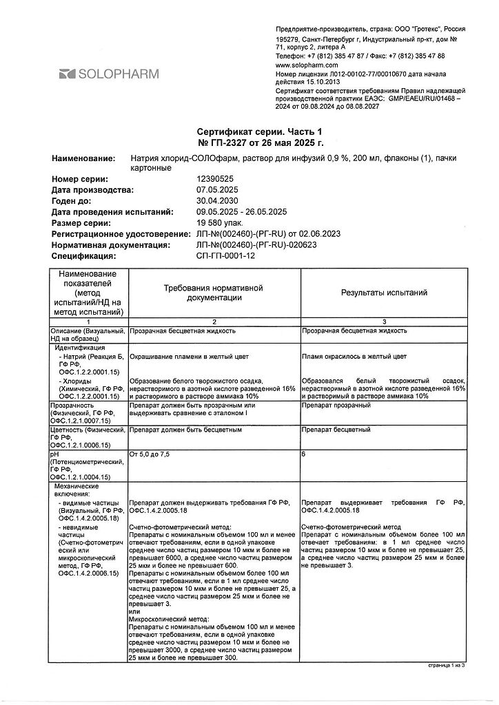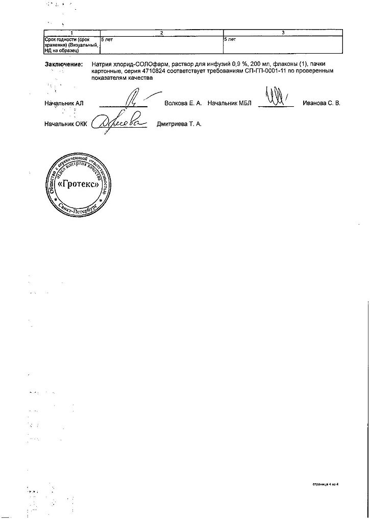 Натрия хлорид-СОЛОфарм Домус раствор для инфузий 0,9 % 200 мл фл 1 шт