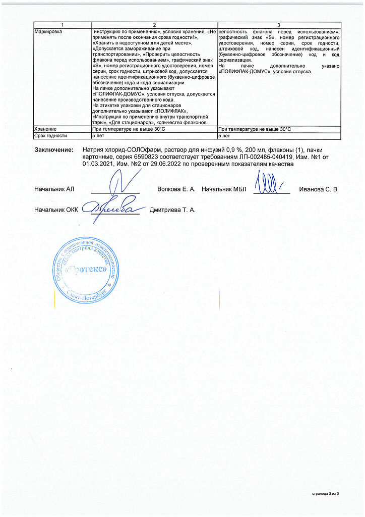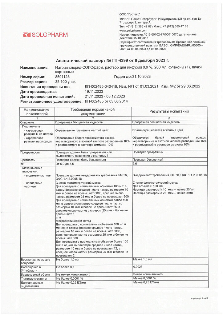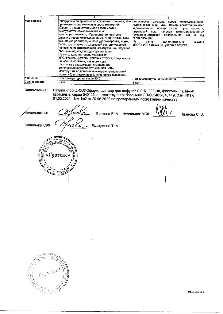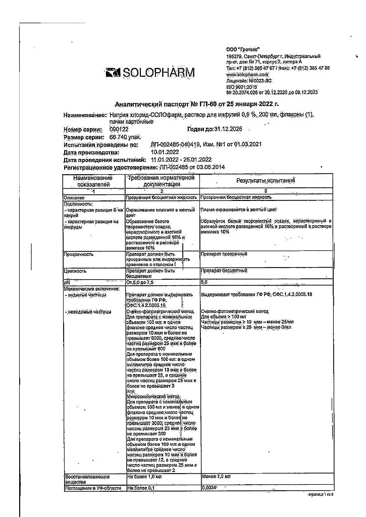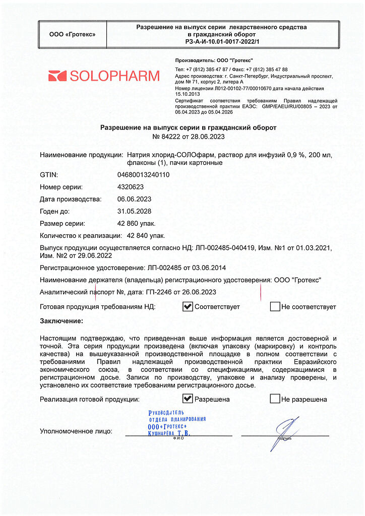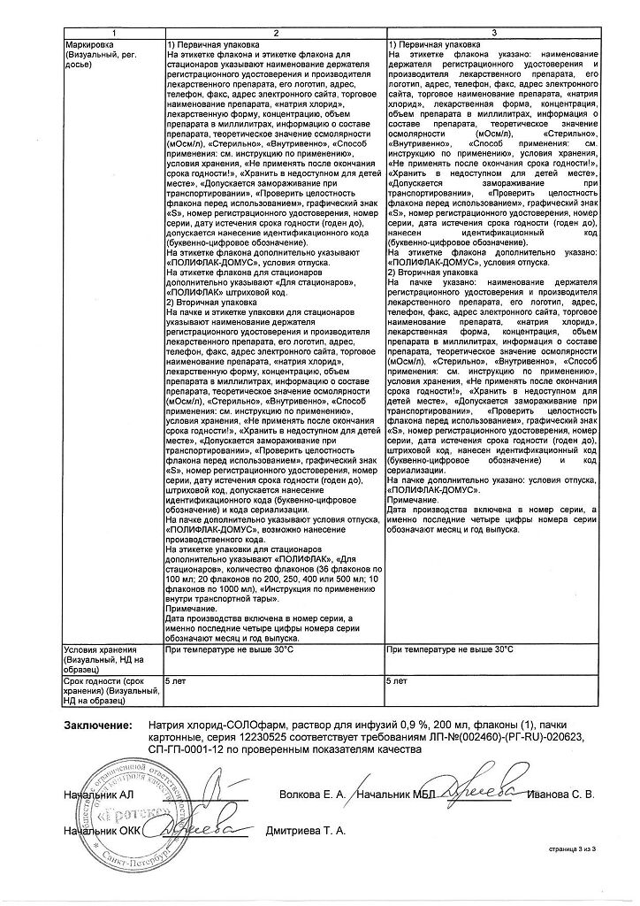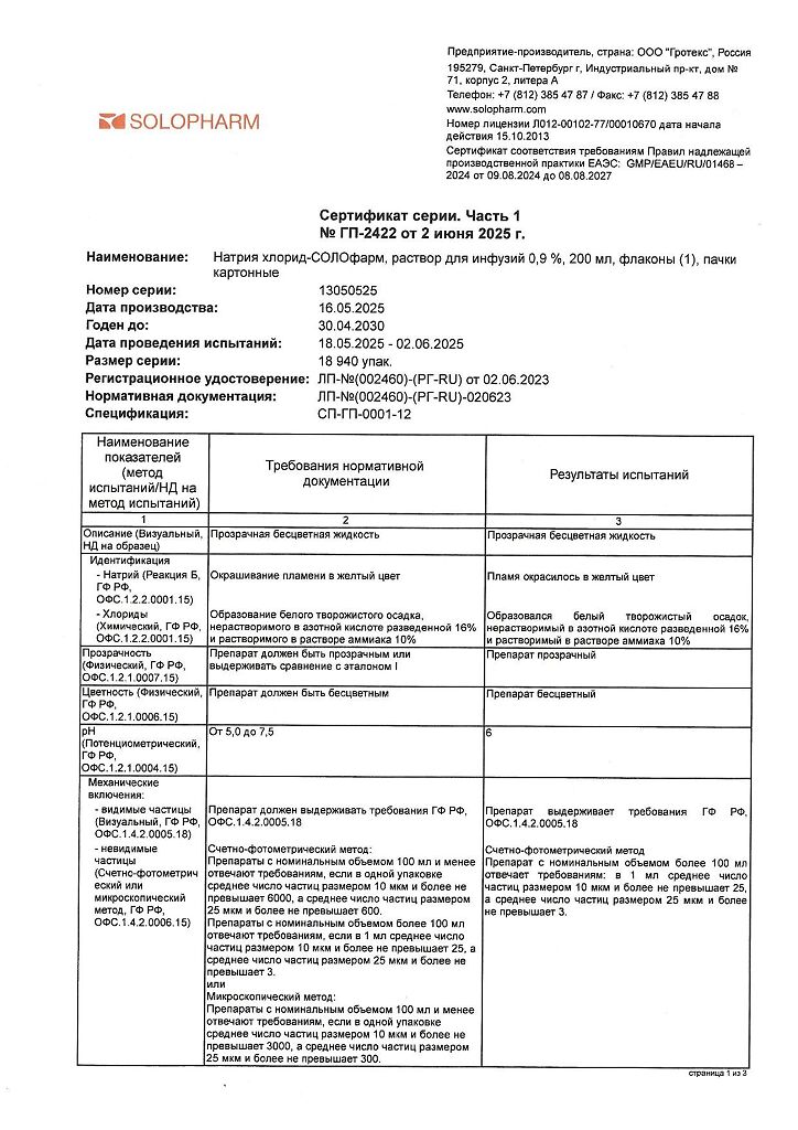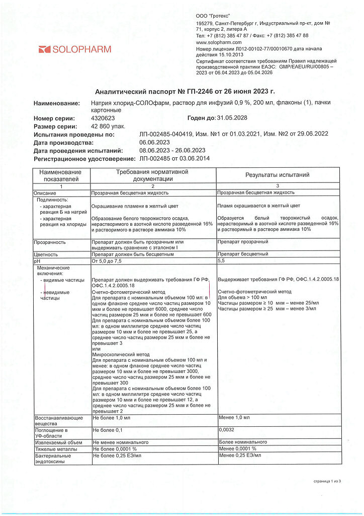Натрия хлорид-СОЛОфарм Домус раствор для инфузий 0,9 % 200 мл фл 1 шт