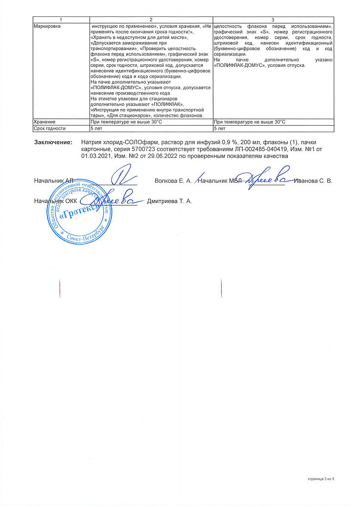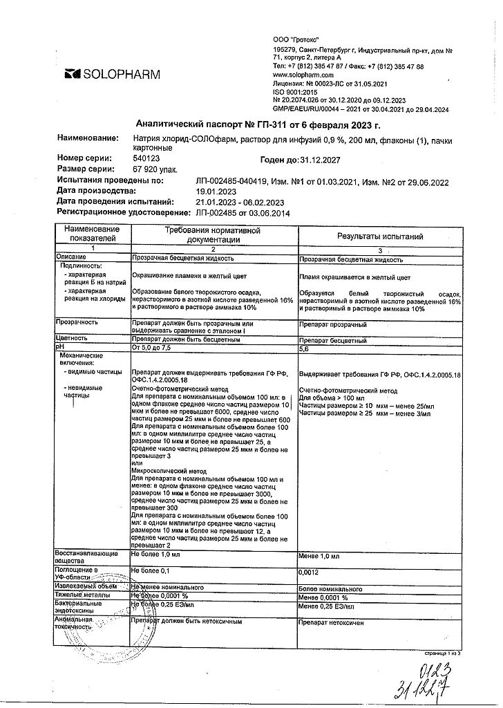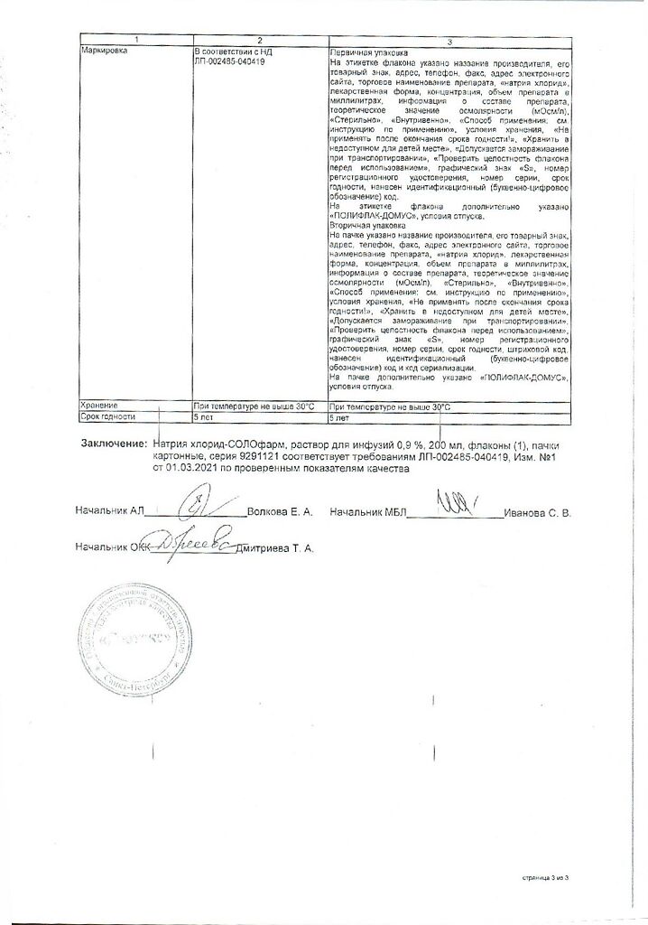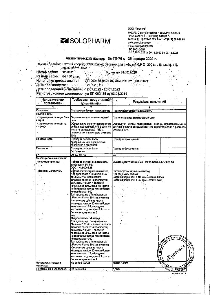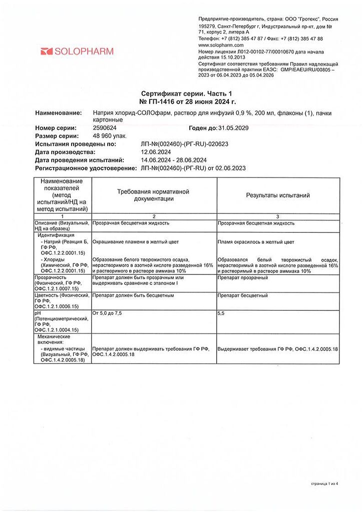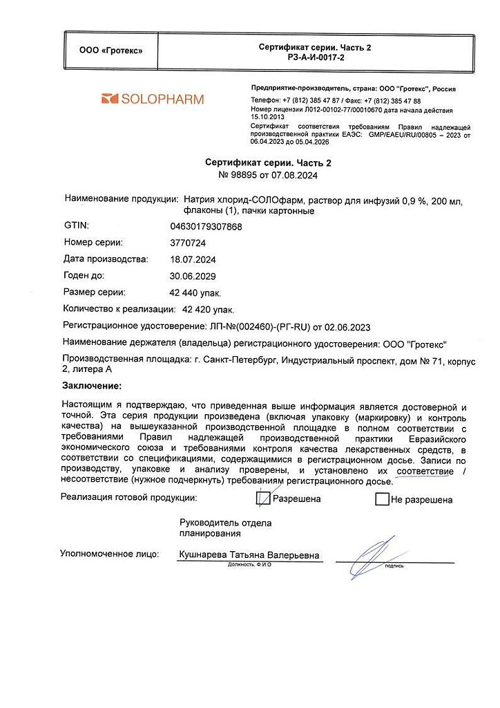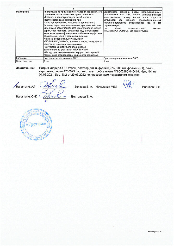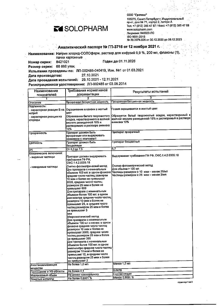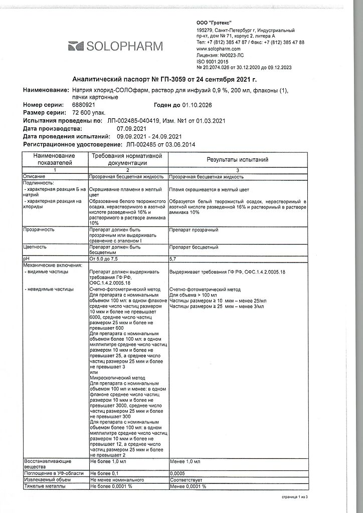 Натрия хлорид-СОЛОфарм Домус раствор для инфузий 0,9 % 200 мл фл 1 шт